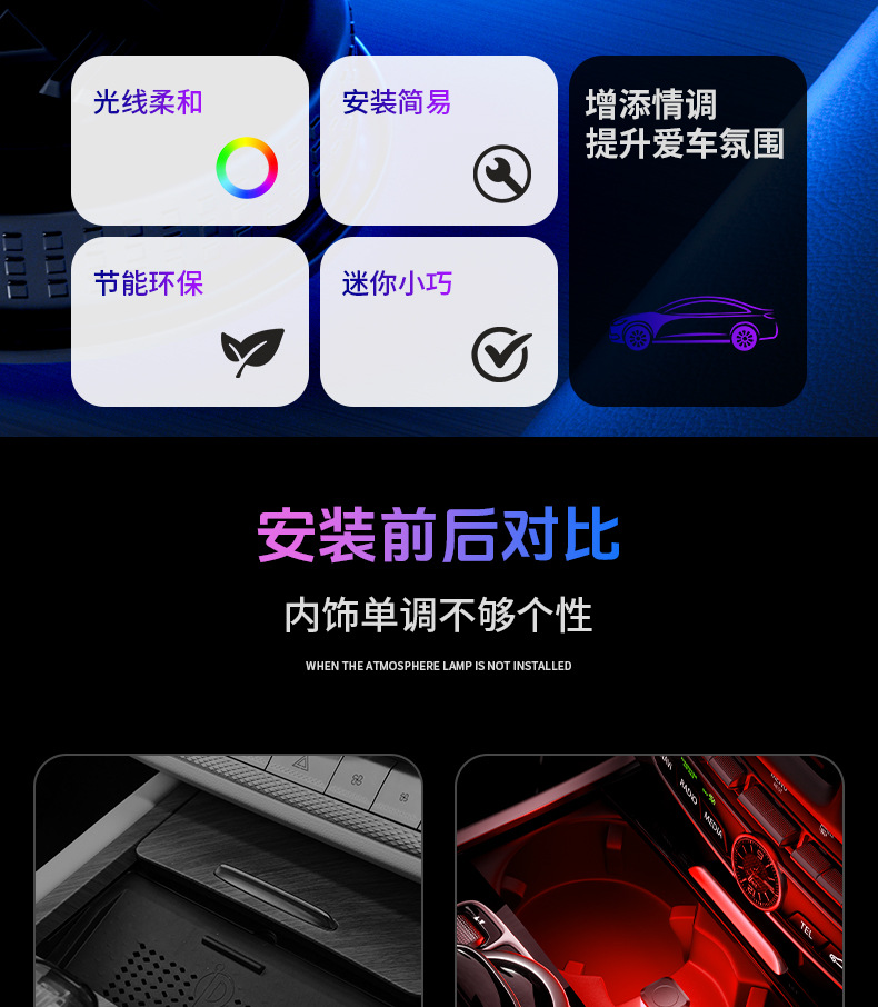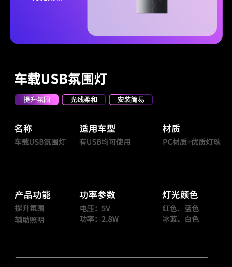 소스 공장 새로운 USB 장식 분위기 빛 LED 자동차 usb 분위기 빛 자동차 인테리어 조명 led 분위기 빛스토어 가기