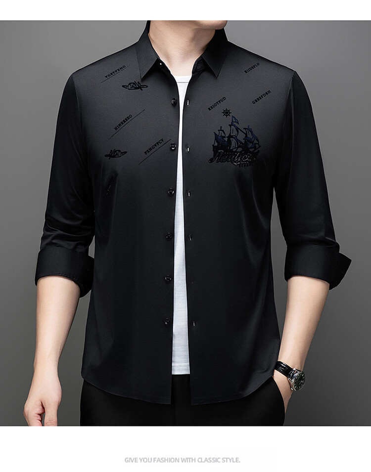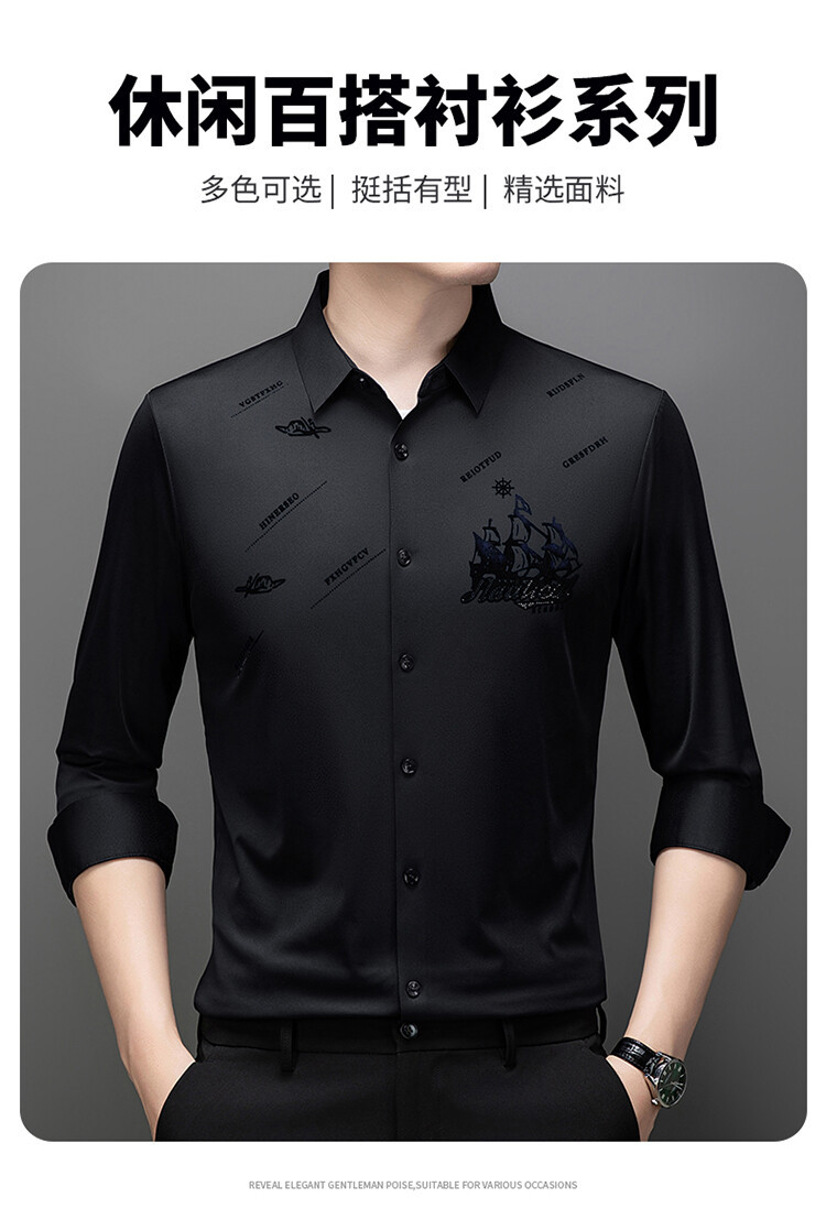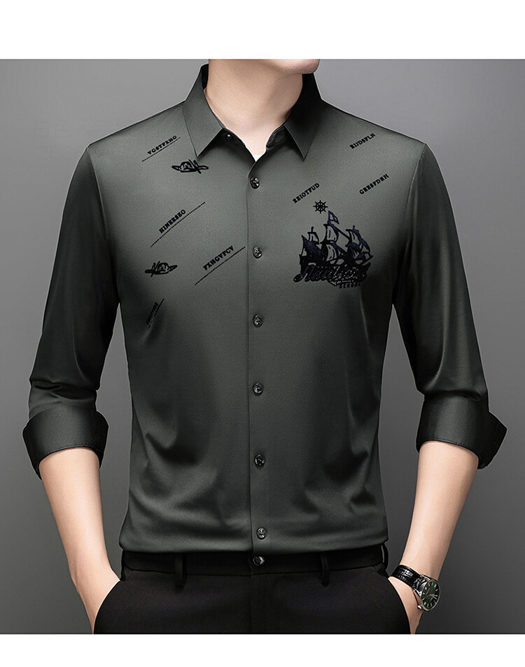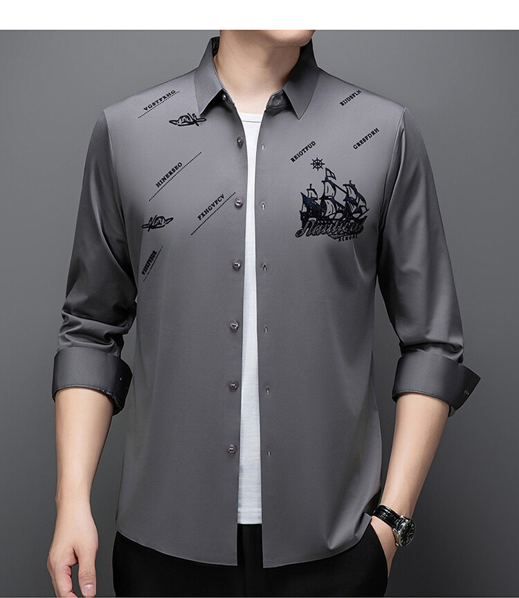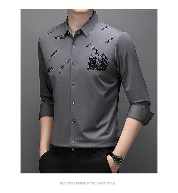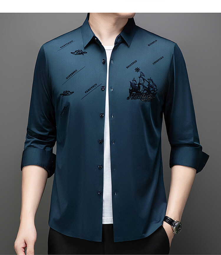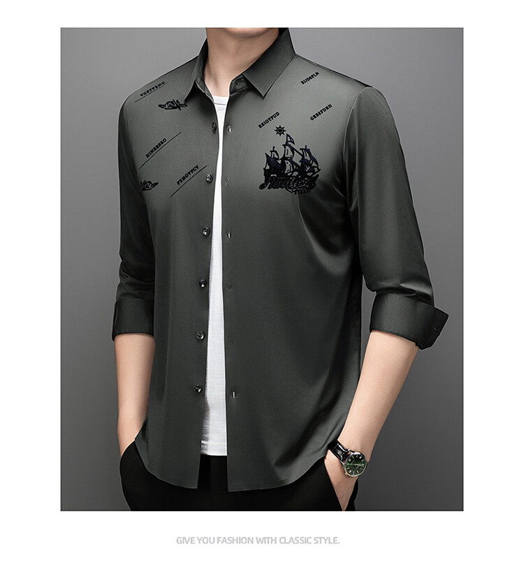 국경 간 라이브 방송 남성 비 마킹 다림질 긴팔 셔츠 느슨한 캐주얼 남성 스트레치 인쇄 봄과 가을 셔츠