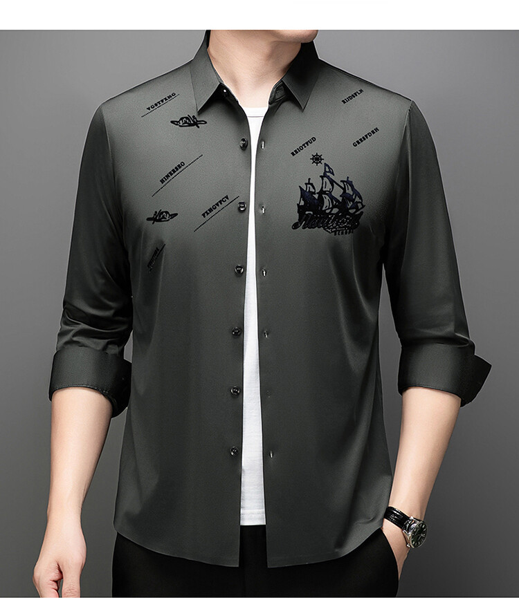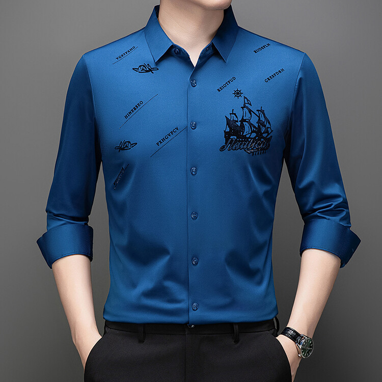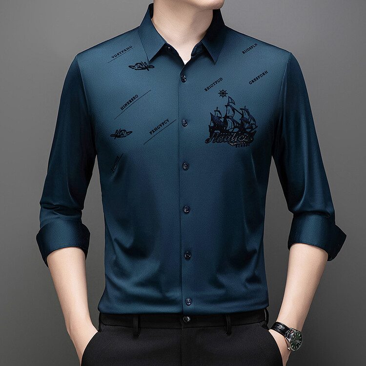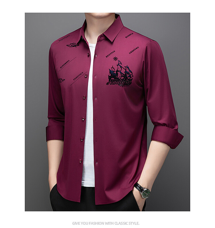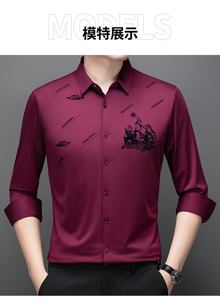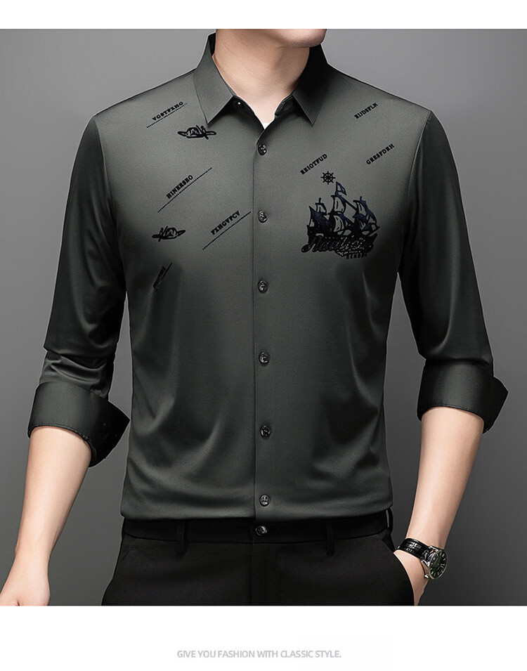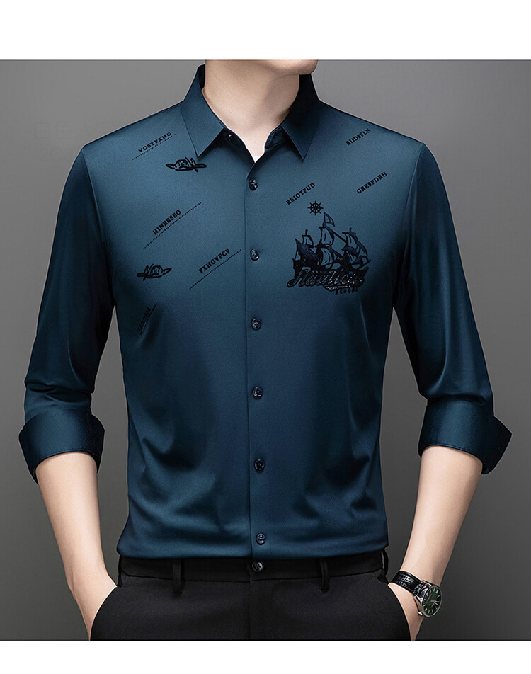 국경 간 라이브 방송 남성 비 마킹 다림질 긴팔 셔츠 느슨한 캐주얼 남성 스트레치 인쇄 봄과 가을 셔츠