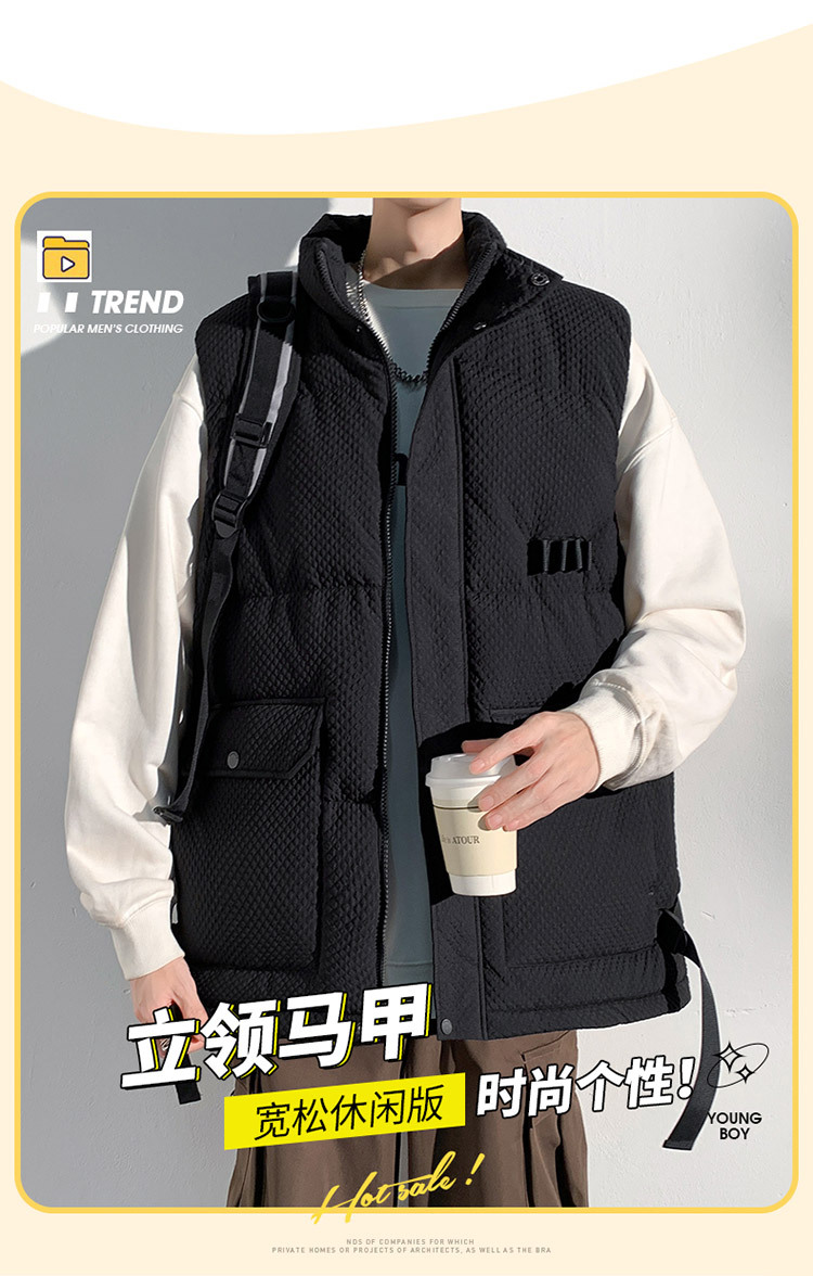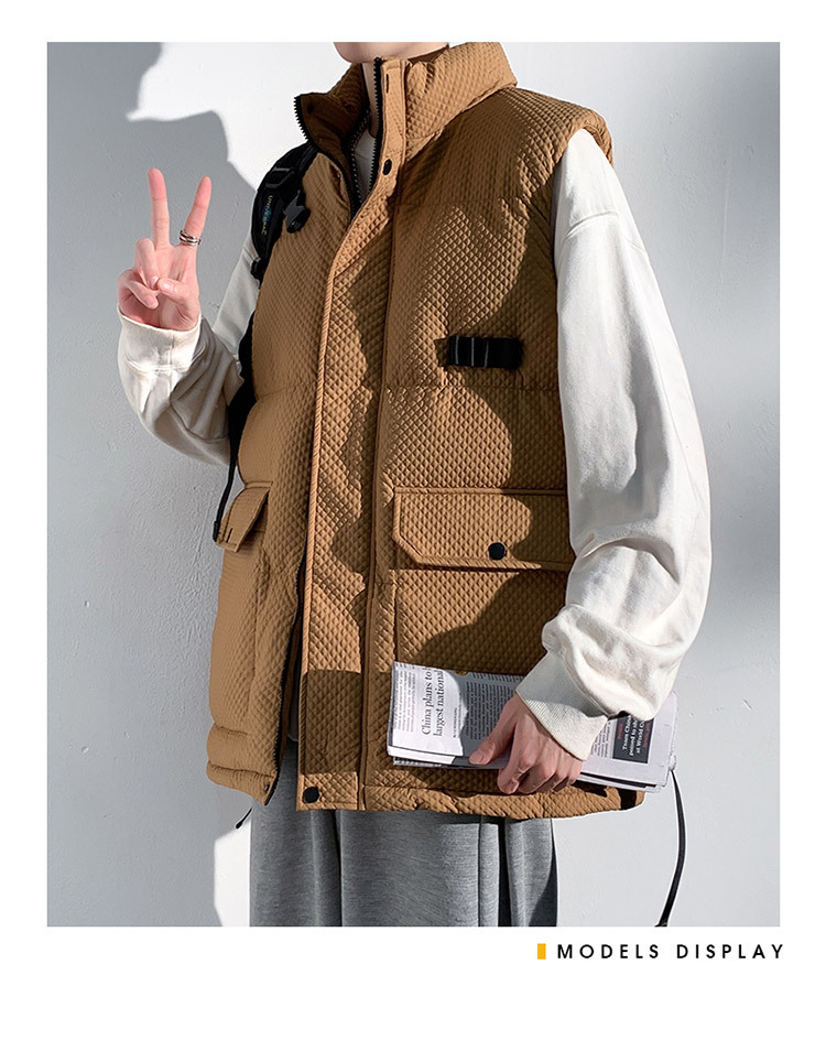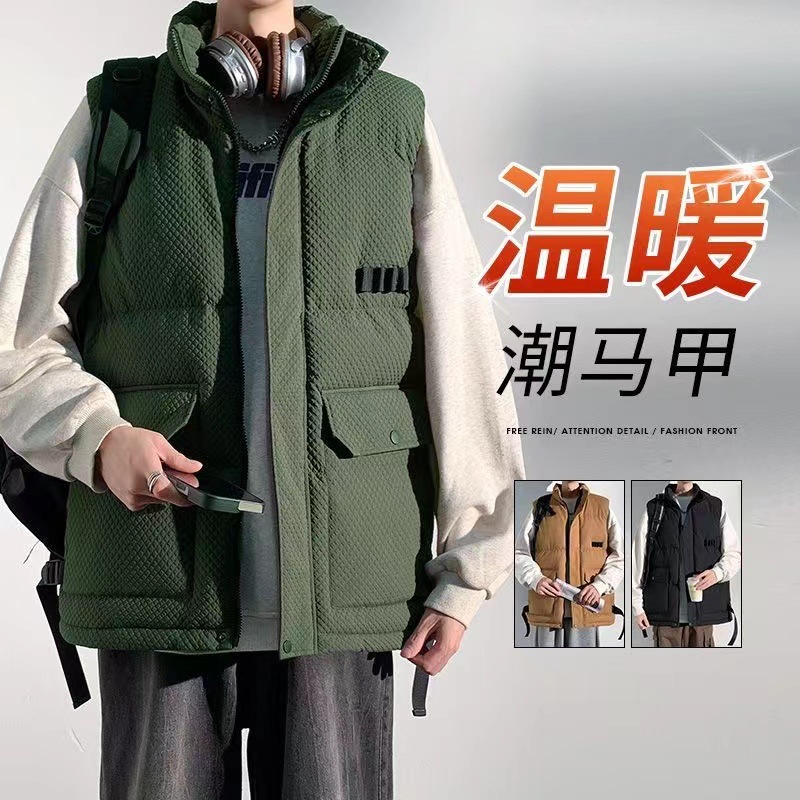 국경 간 조끼 남자 가을 겨울 야외 패션 브랜드 느슨한 스포츠 플러스 사이즈 툴링 조끼 다운 코튼 재킷