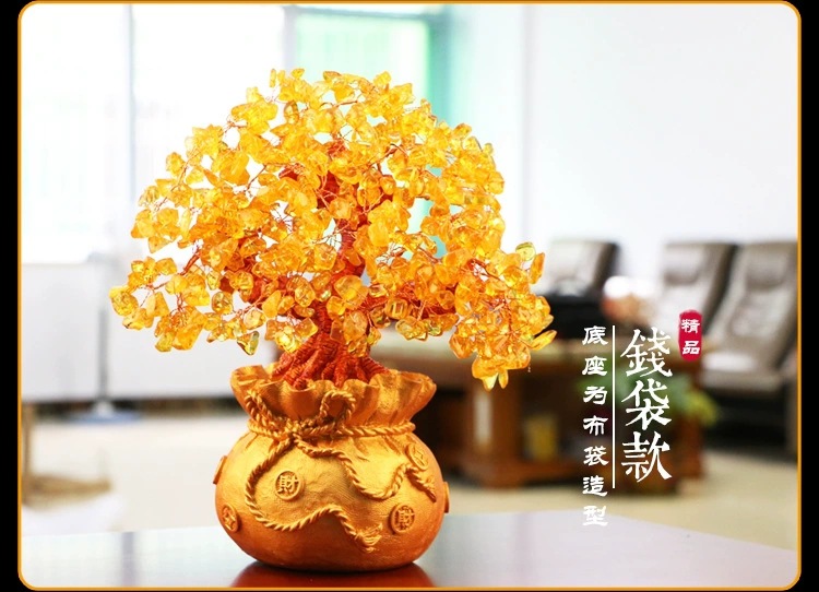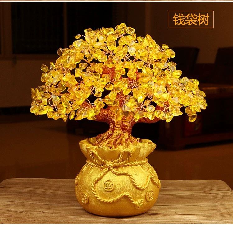 공장 직접 도매 천연 크리스탈 행운의 나무 돈 가방 나무 포춘 나무 비즈니스 공예 선물 장식품스토어 가기