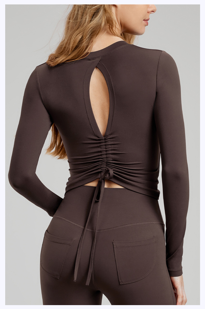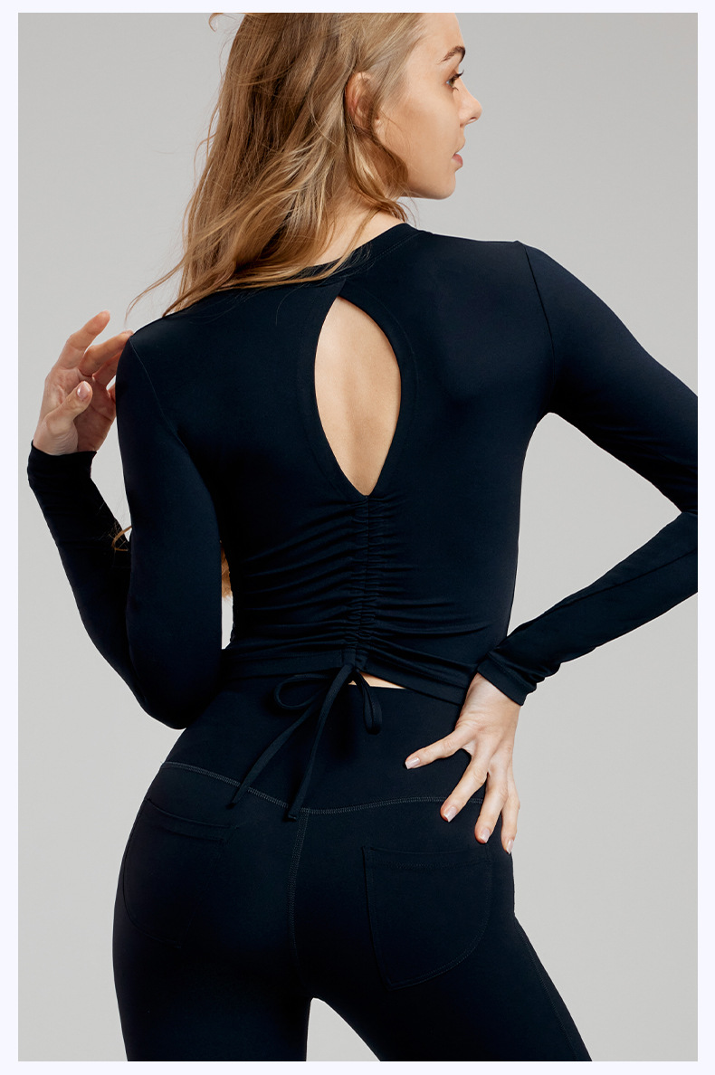 가을과 겨울 요가 의류 최고 고급 감각 드로우 스트링 아름다운 등 긴팔 티셔츠 섹시한 백리스 짧은 스포츠 피트니스 의류