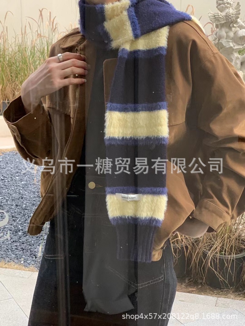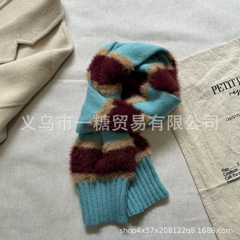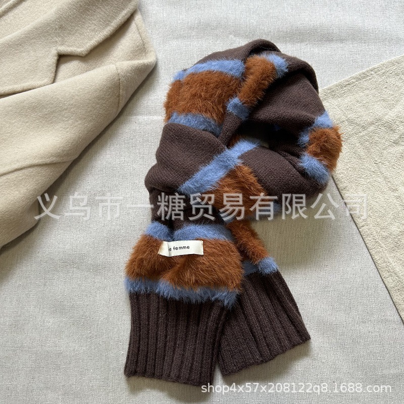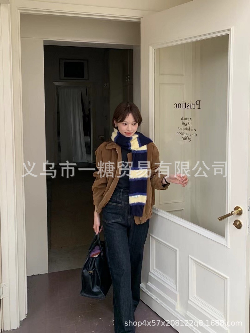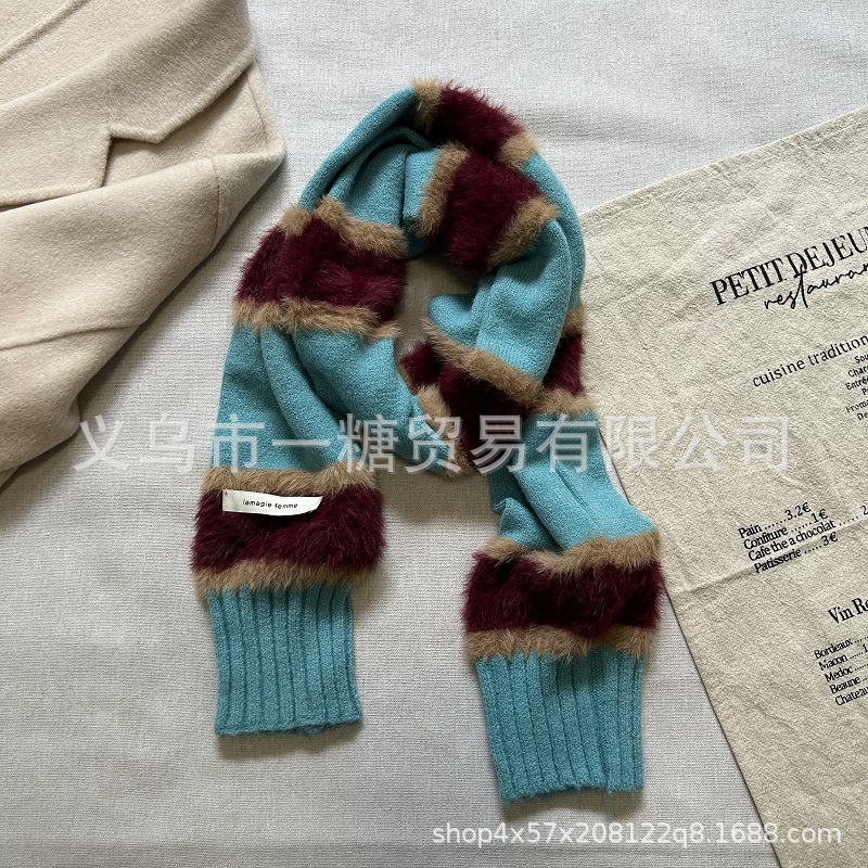 명암 컬러 긴 소매 디자인 봉제 바느질 니트 스카프 여성의 가을과 겨울 따뜻한 복고풍 학생 커플 스카프스토어 가기