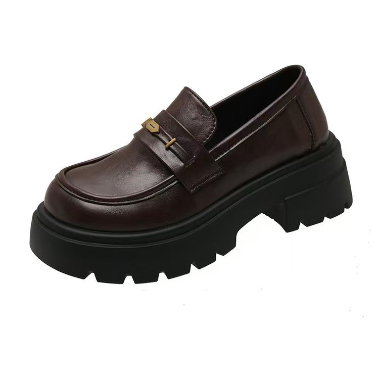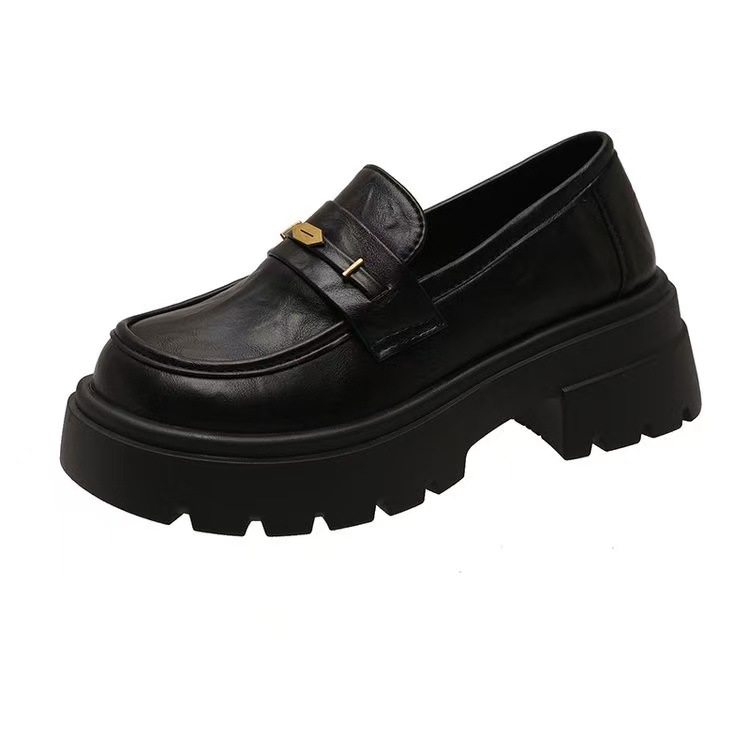 여성용 영국풍 가죽신발 2026년 신상 가을겨울 블랙 싱글 슈즈 두꺼운 밑창 키높이 로퍼 여성용 슬립온
