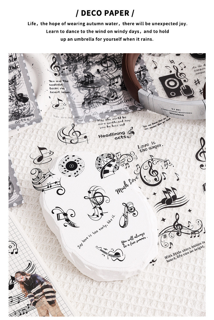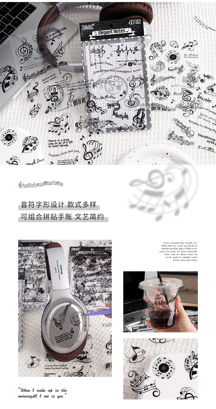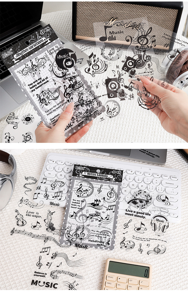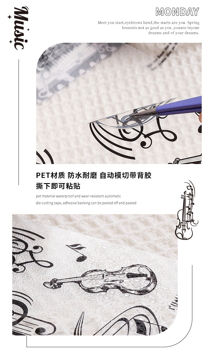 간단하고 우아한 메모 투명 방수 애완 동물 스티커 DIY 손 계정 일기 장식 스티커 크로스 국경 복고풍 노트 악기 스티커스토어 가기
