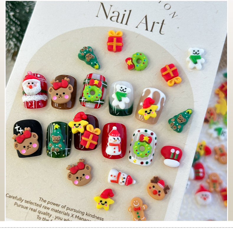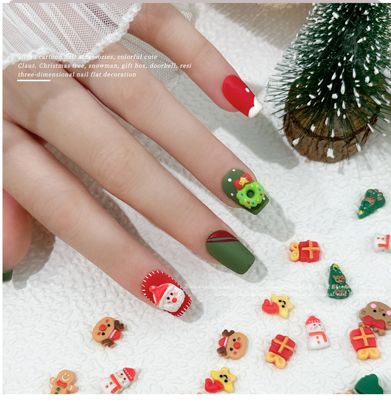 새로운 크리스마스 만화 네일 아트 장식품 귀여운 산타 엘크 눈사람 선물 상자 DIY 네일 장식품스토어 가기