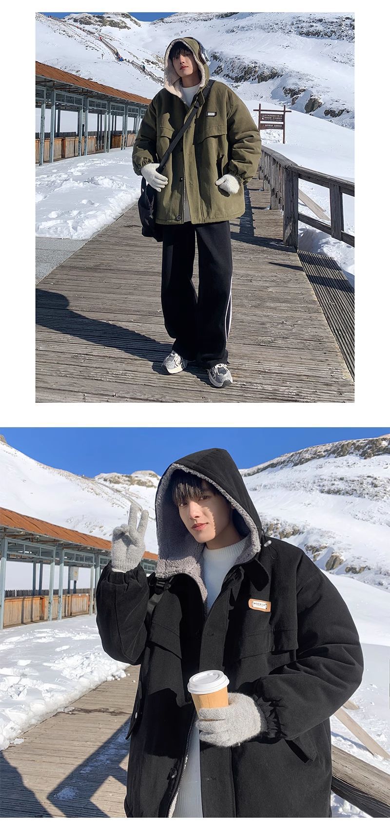 양고기 양털 코튼 패딩 코트 남자 겨울 뉴 기모 두꺼운 한국 루즈 후드 재킷 남자 아메리칸 스타일 레트로 코튼 패딩 코트스토어 가기