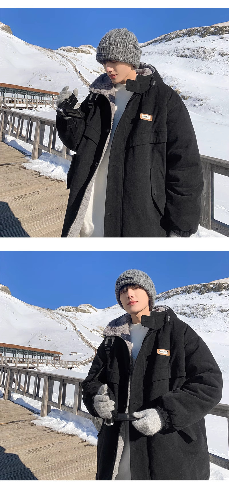 양고기 양털 코튼 패딩 코트 남자 겨울 뉴 기모 두꺼운 한국 루즈 후드 재킷 남자 아메리칸 스타일 레트로 코튼 패딩 코트