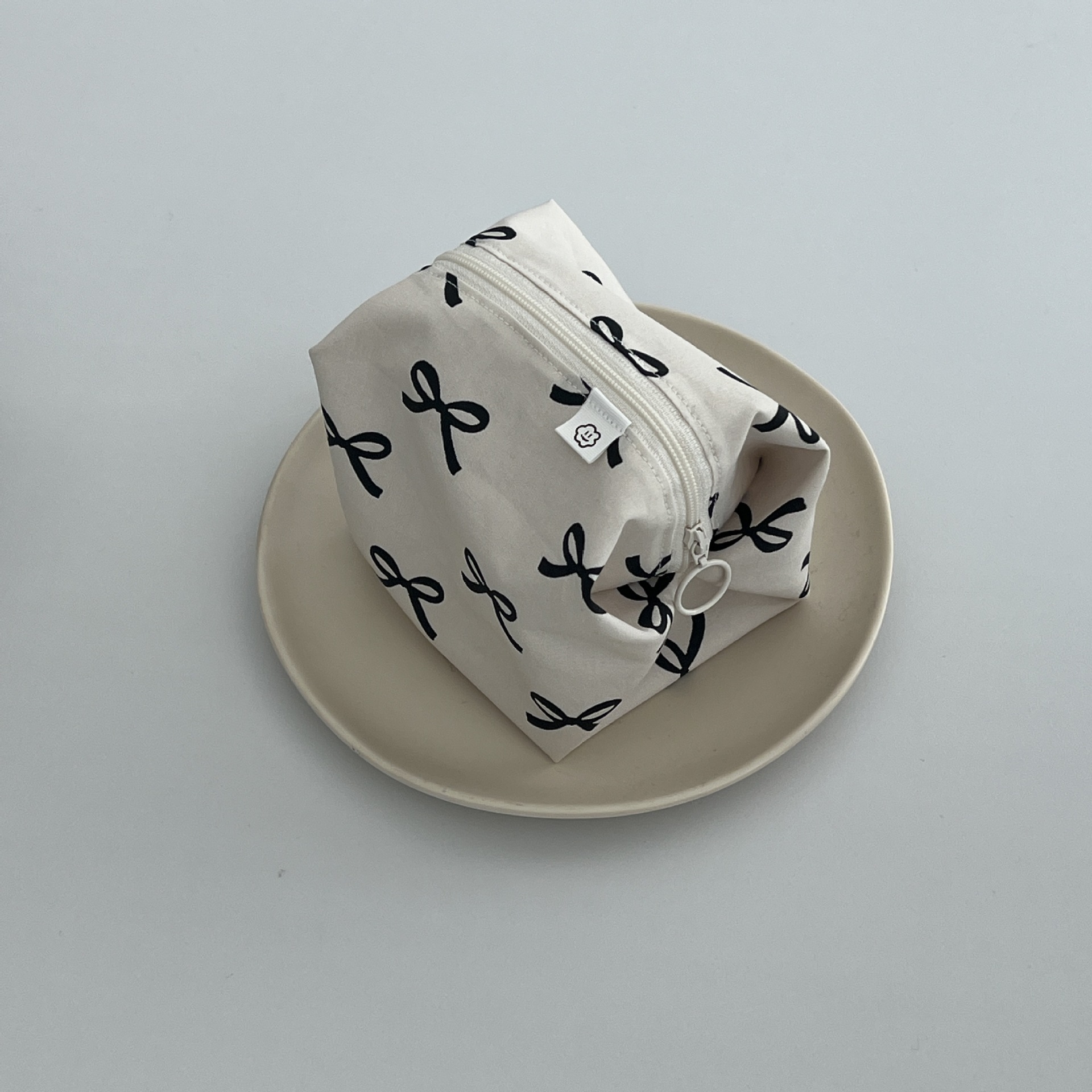 한국 스타일 Ins 스타일 흑백 리본 순수한면 화장품 가방 새로운 여행 학생 화장품 수납 가방스토어 가기
