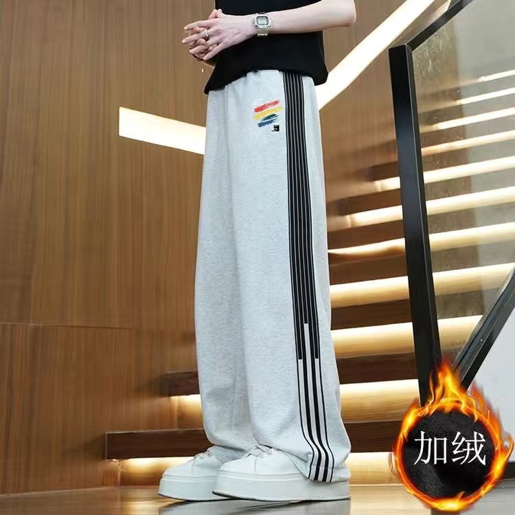 한국식 캐주얼 와이드 레그 바지 가을과 겨울 남자 기모 두꺼운 바지 인쇄 트렌디 느슨한 운동복 올매치 스포츠 바지스토어 가기