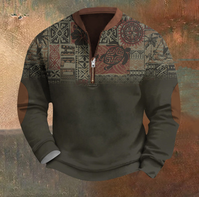 국경 간 유럽과 미국의 지퍼 스웨터 남성 3D 인쇄 남성 반 지퍼 스웨터 유럽과 미국의 가을과 겨울 인쇄 스웨터