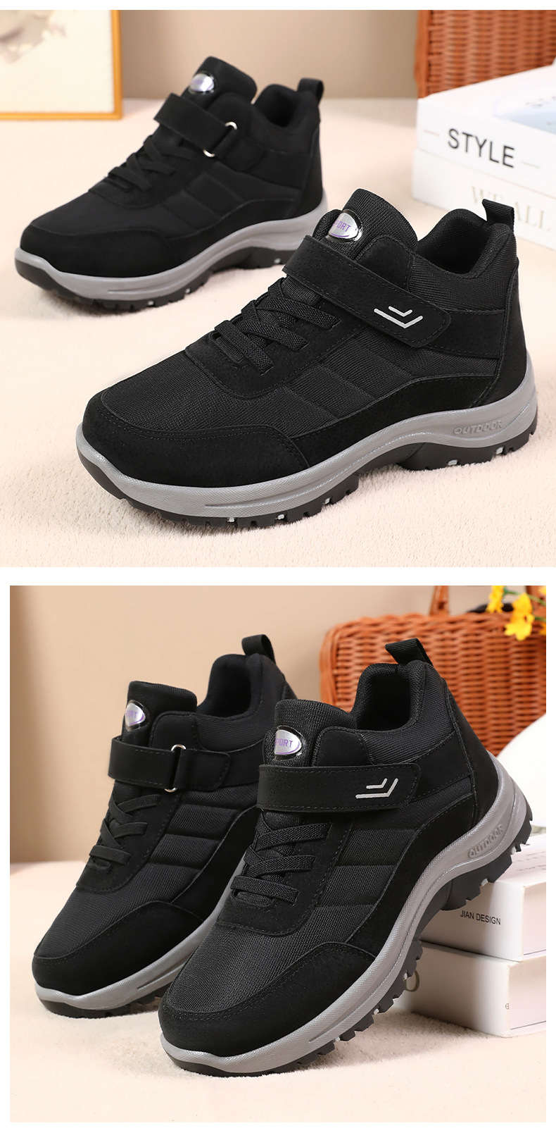 남성용 겨울 신상품 남녀공용 대형 사이즈 아웃도어 등산화 벨크로 편리한 노인용 신발 여행화스토어 가기