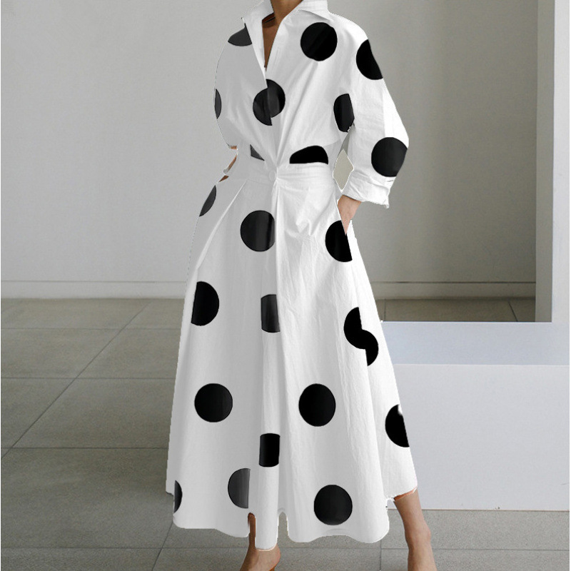 국경 간 대외 무역 2024temu 폭발 플러스 사이즈 통근 패션 POLO 칼라 안감 9 점 소매 느슨한 대형 진자 원피스스토어 가기