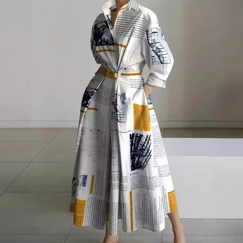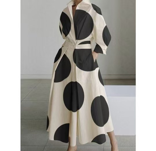 국경 간 대외 무역 2024temu 폭발 플러스 사이즈 통근 패션 POLO 칼라 안감 9 점 소매 느슨한 대형 진자 원피스