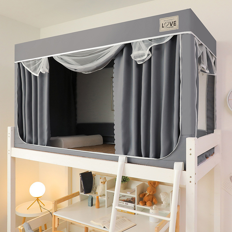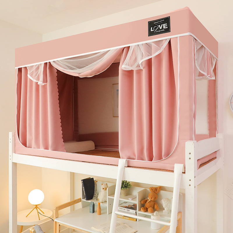학생 기숙사 짠 두꺼운 커튼 원단 강한 음영 침대 커튼 침실 상하 침대 커튼 브래킷이있는 모기장