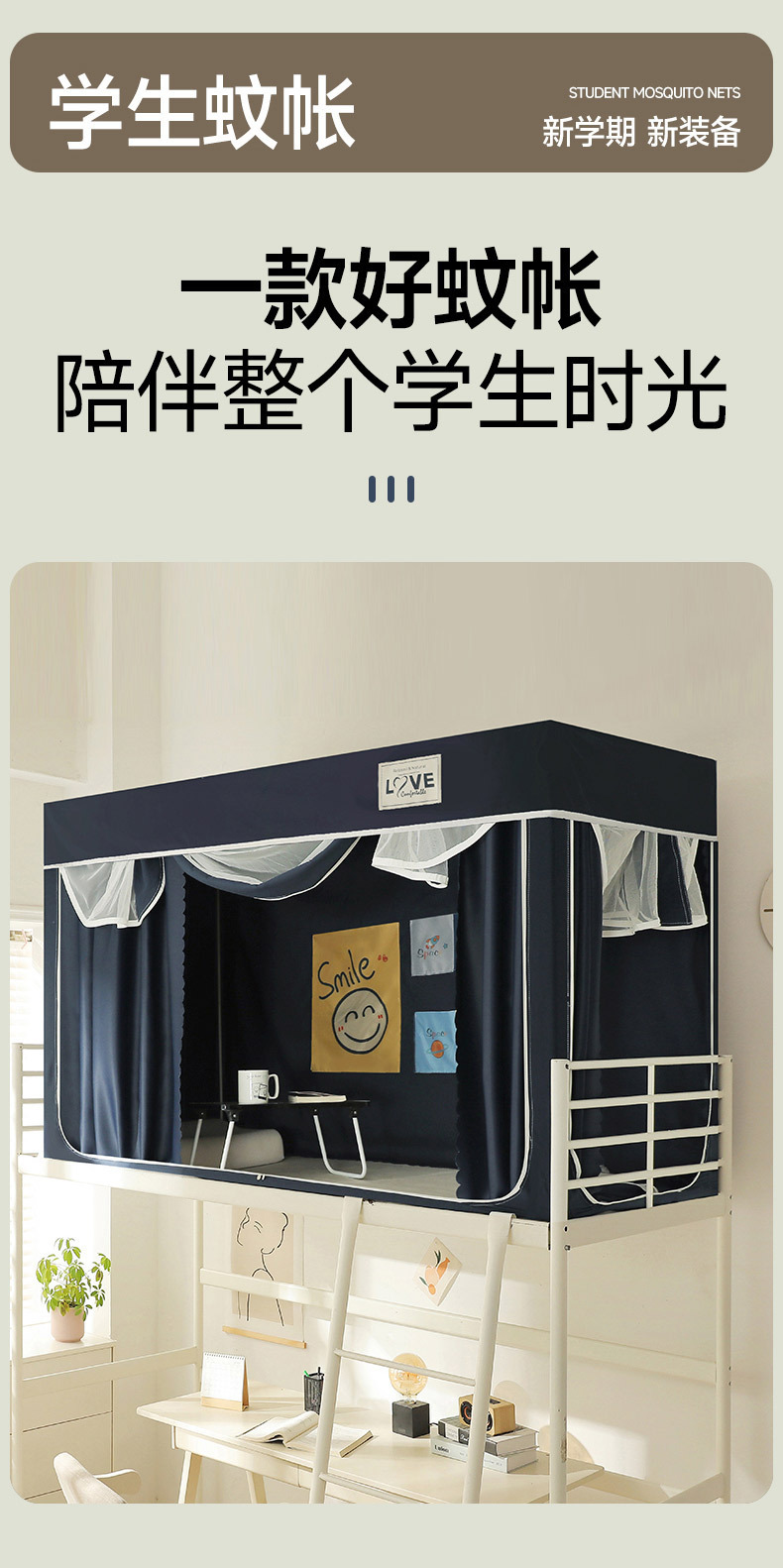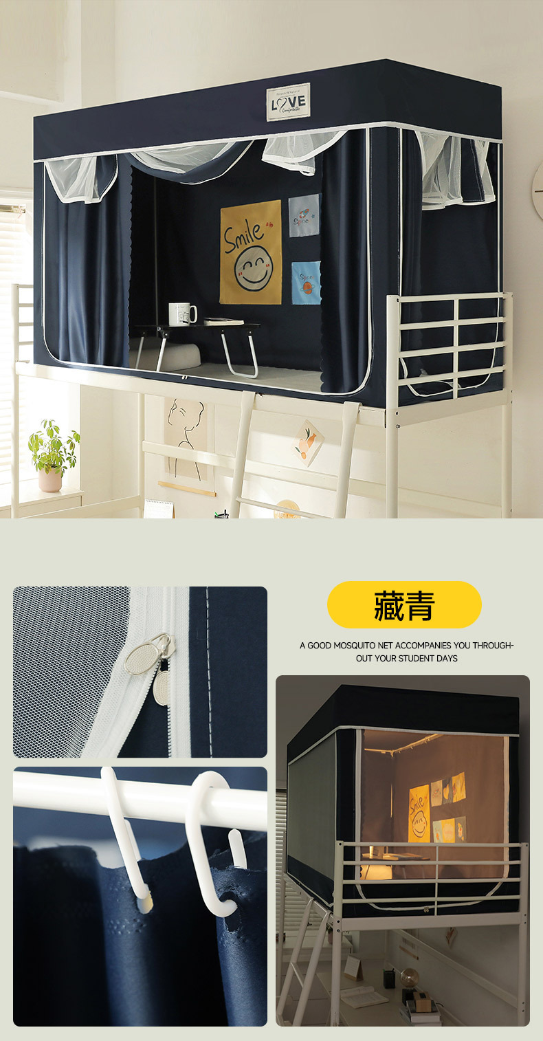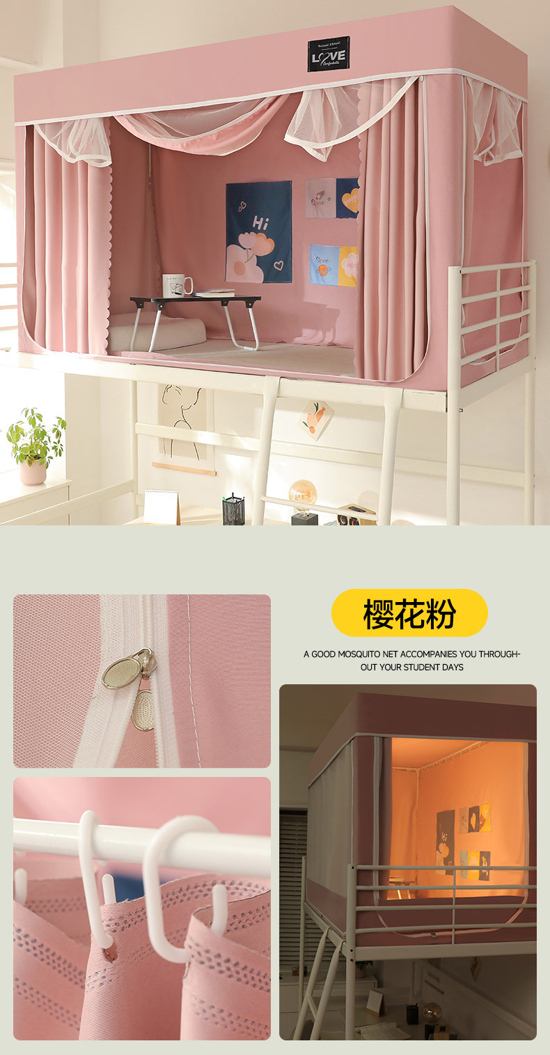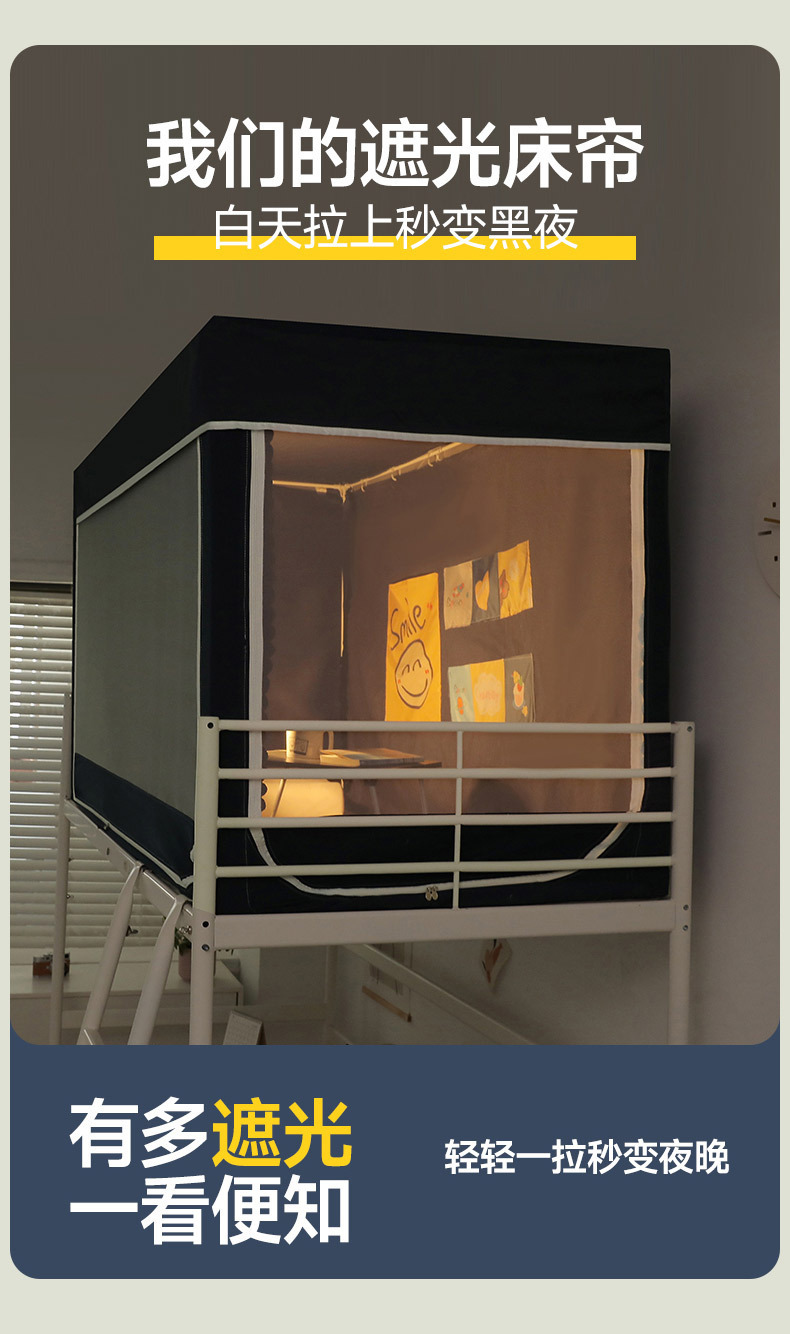 学生宿舍梭织加厚窗帘布强遮光床帘寝室上下铺床幔帘子蚊帐含支架