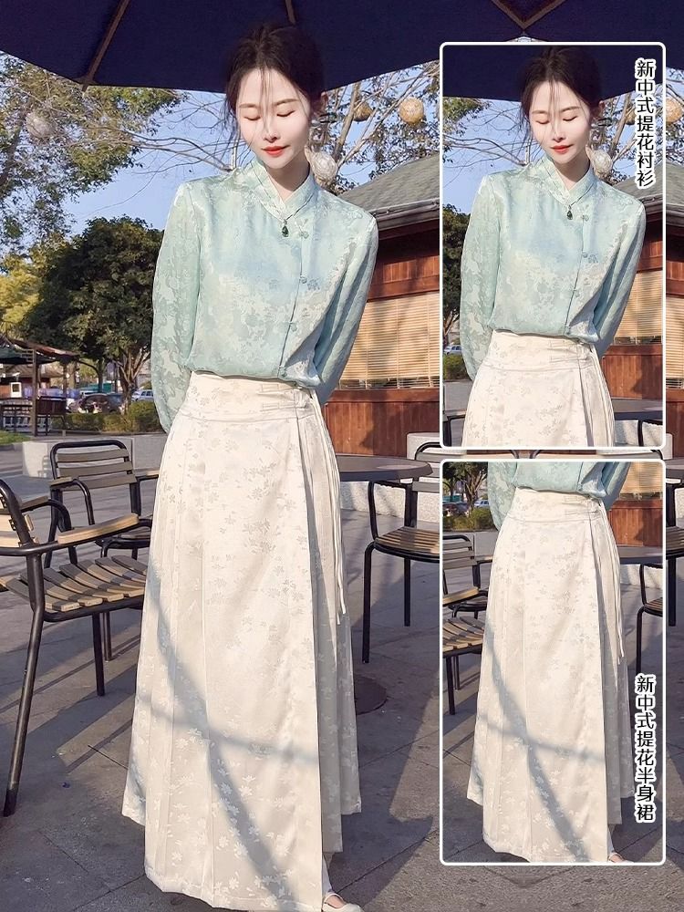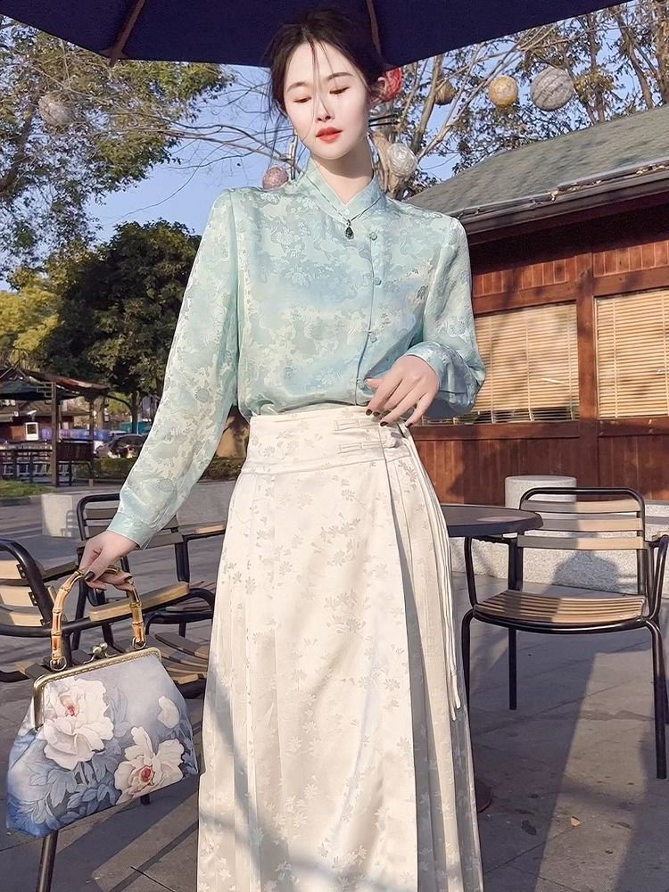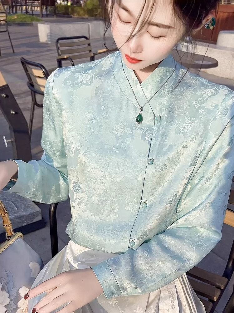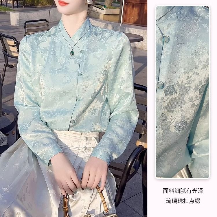 새로운 중국 스타일 착용 최고 여성의 2024 초기 가을 모방 뽕나무 실크 긴 소매 셔츠 국가 스타일 샤넬 스타일 셔츠