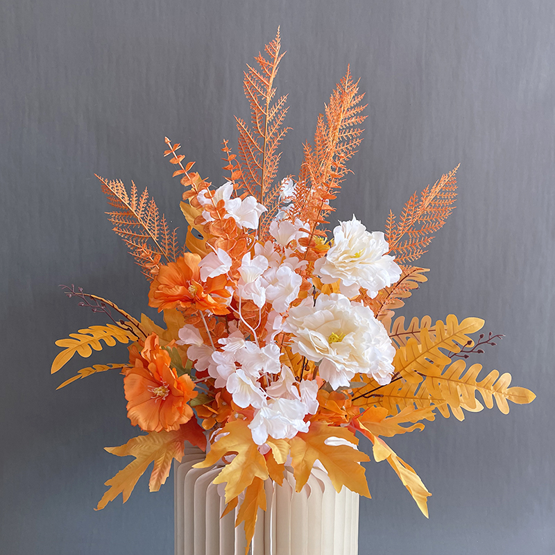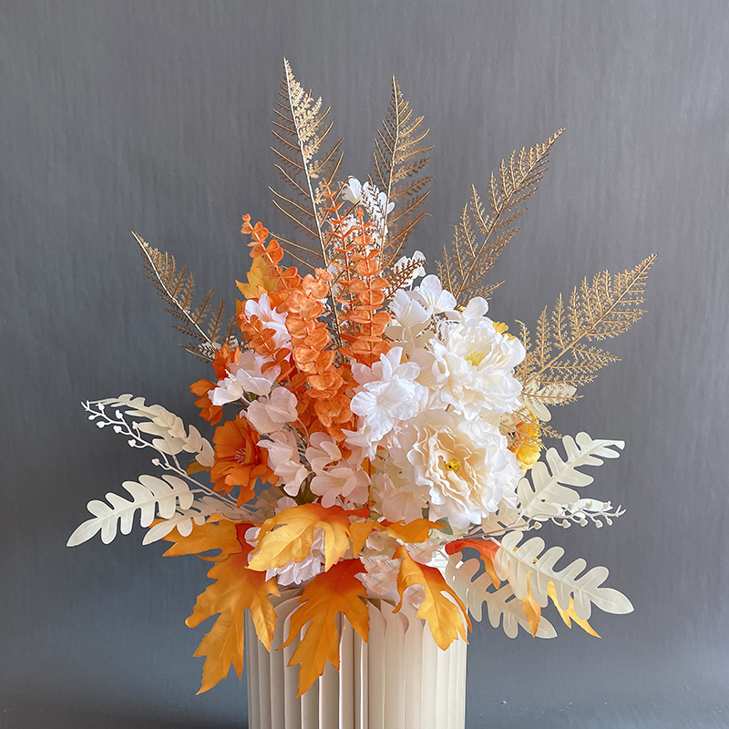 • 오렌지 윈드 차임 오렌지 + 샴페인 배경 꽃