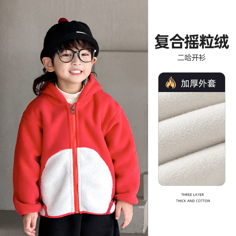 어린이 겨울옷 소년 양털 코트 2024 겨울 새 소년 따뜻한 옷 기모 두껍게