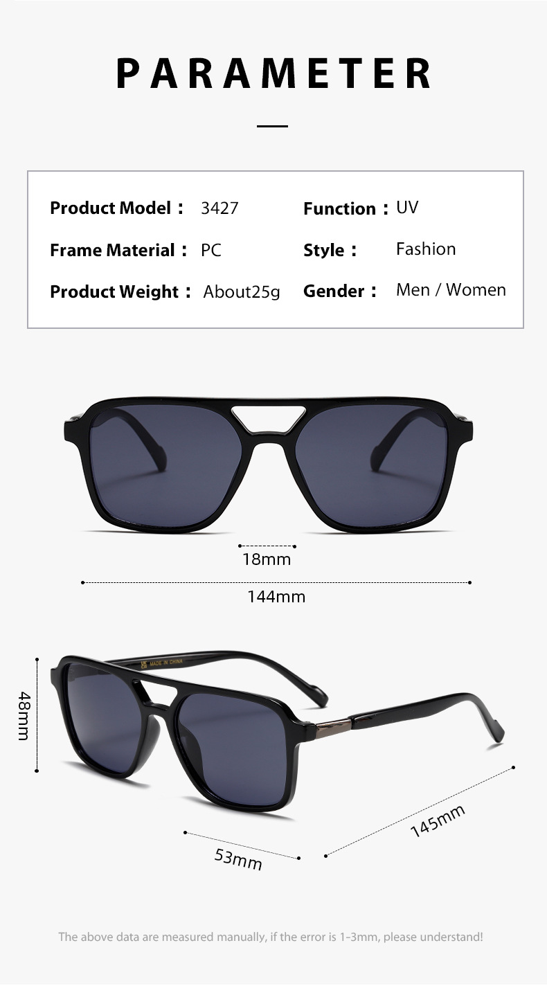 3427 더블 빔 파일럿 선글라스 유럽과 미국 UV400 패션 국경 대외 무역 아마존 금속 액세서리스토어 가기