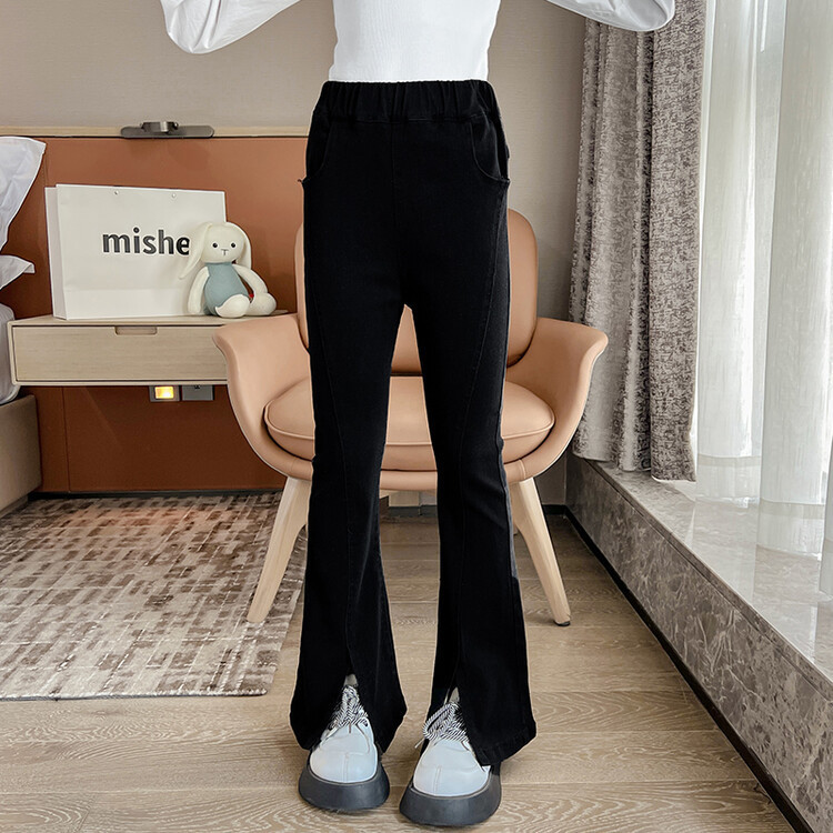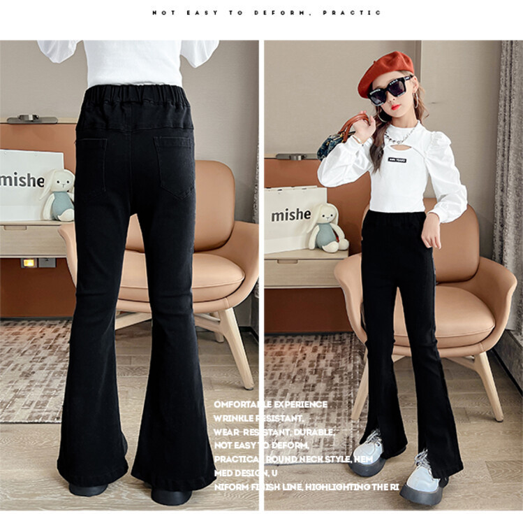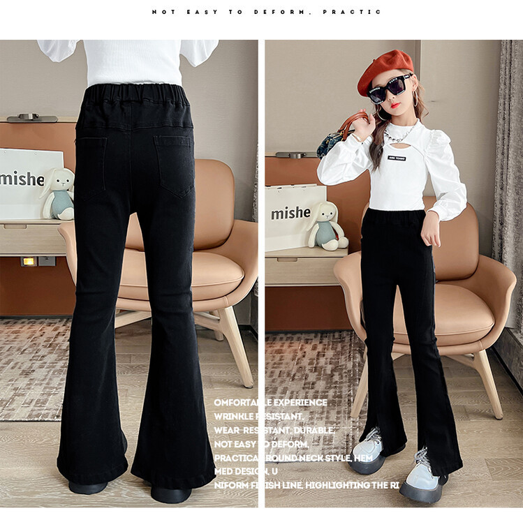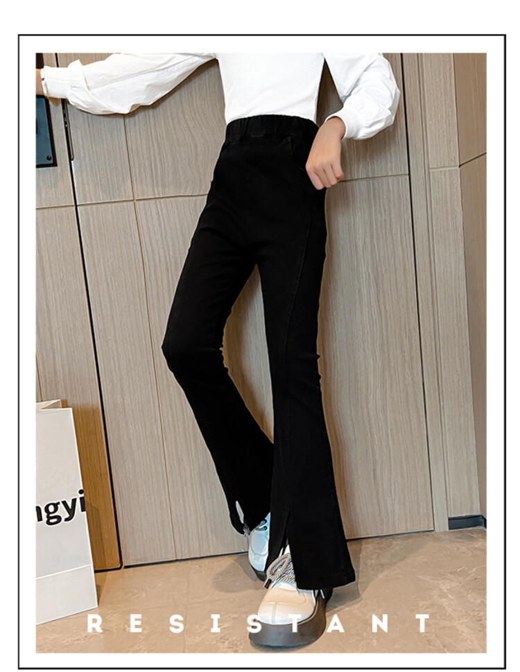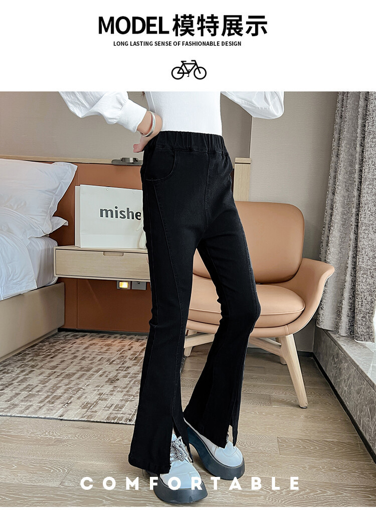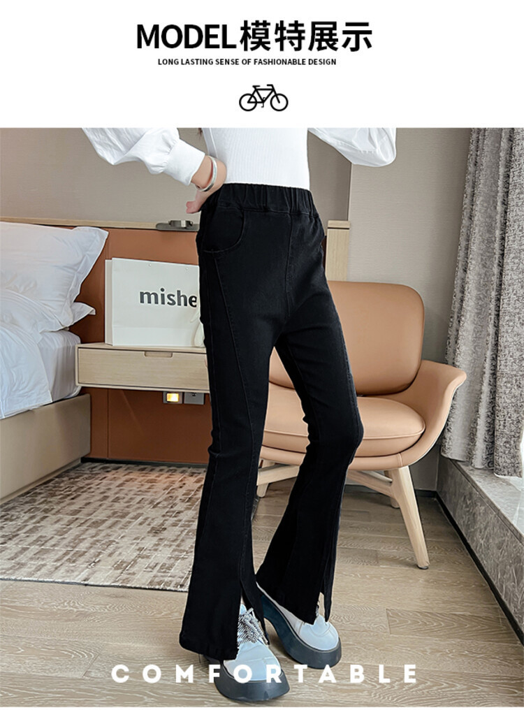 소녀 분할 트럼펫 바지 기모 두꺼운 겨울 소녀 슬림 핏 스트레치 청바지 한국 트렌디 바지스토어 가기