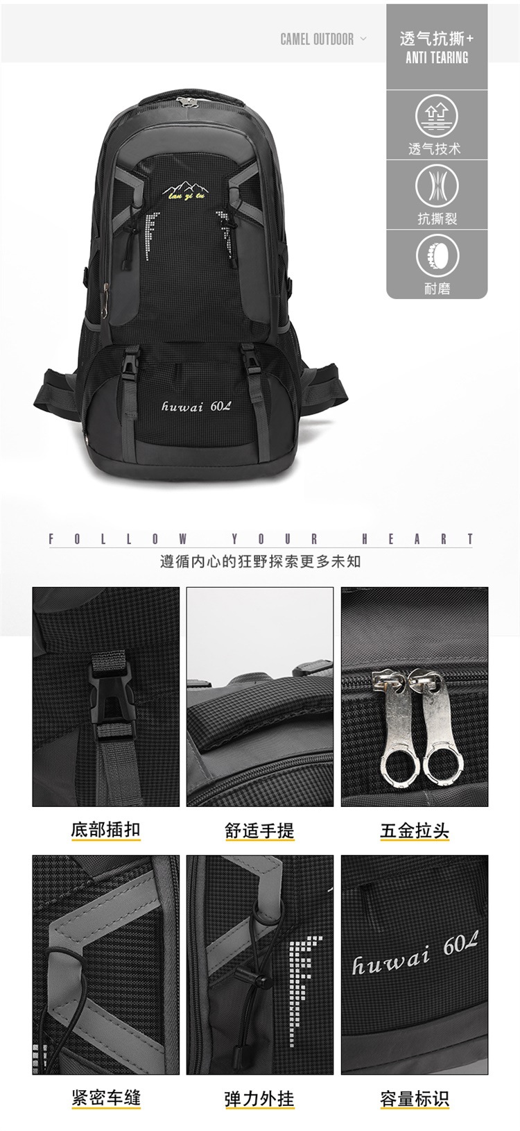 60L 대용량 야외 등산 가방 방수 나일론 여행 가방 커플 배낭 캐주얼 스포츠 여행 배낭