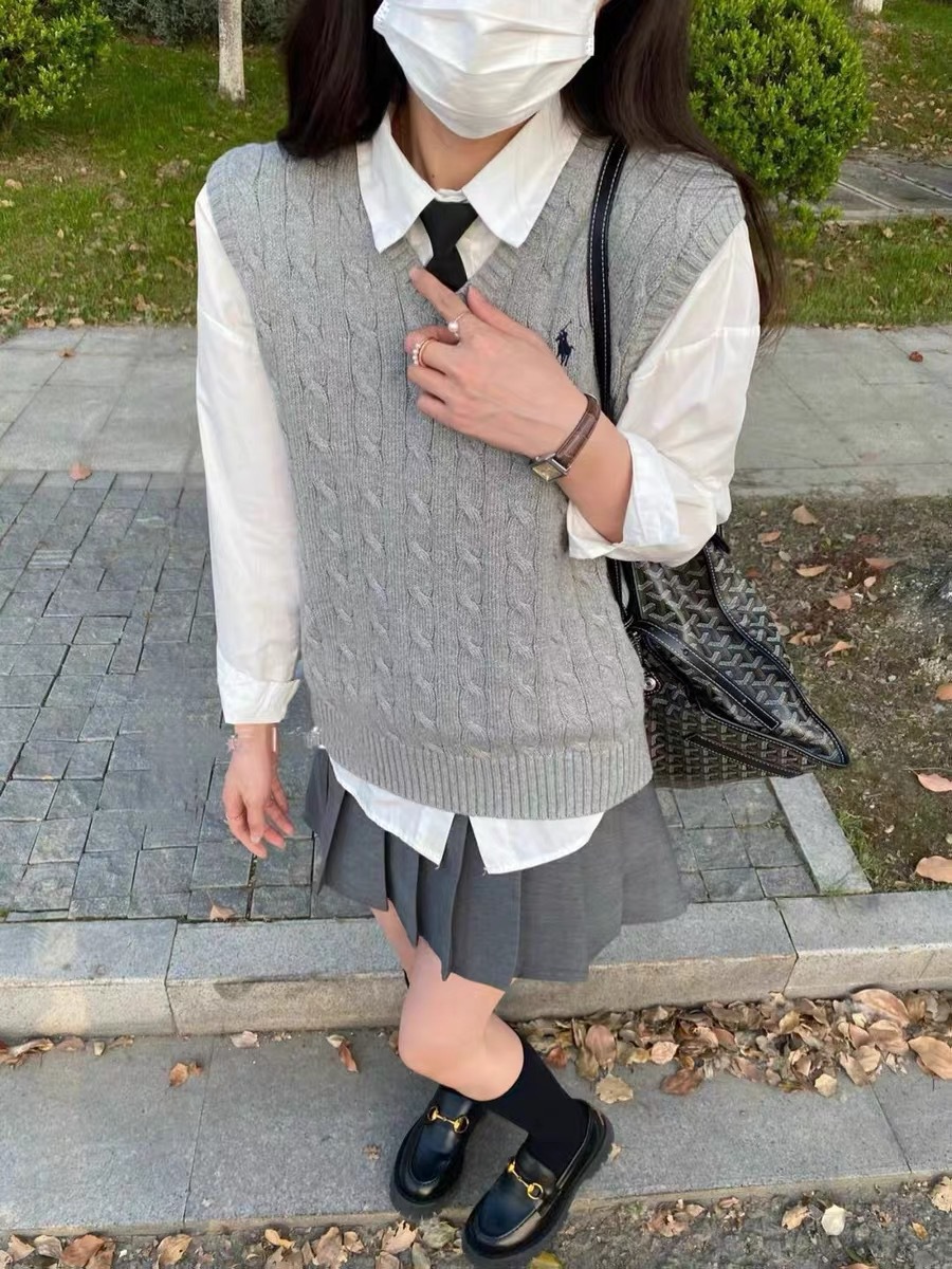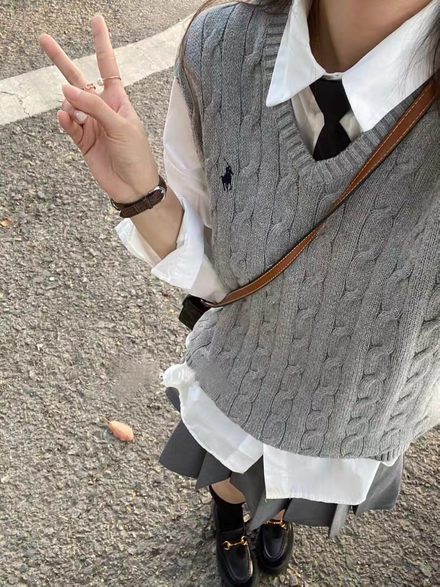 쌓인 패셔너블 트위스트 V넥 니트 조끼 여성 가을과 겨울 트위스트 젊은 민소매 루즈 조끼 대학 스타일 조끼
