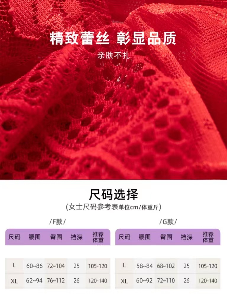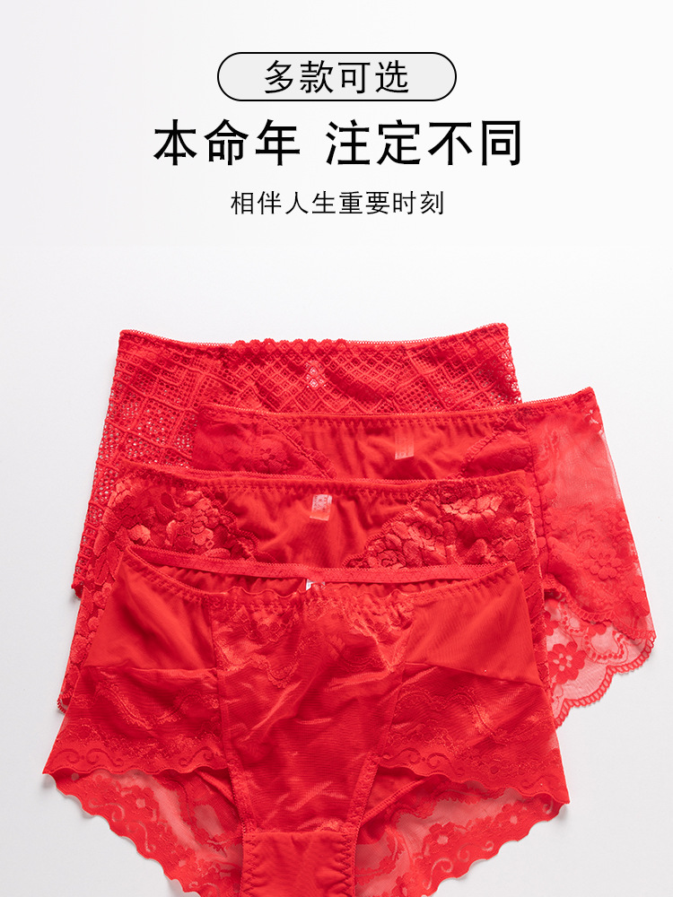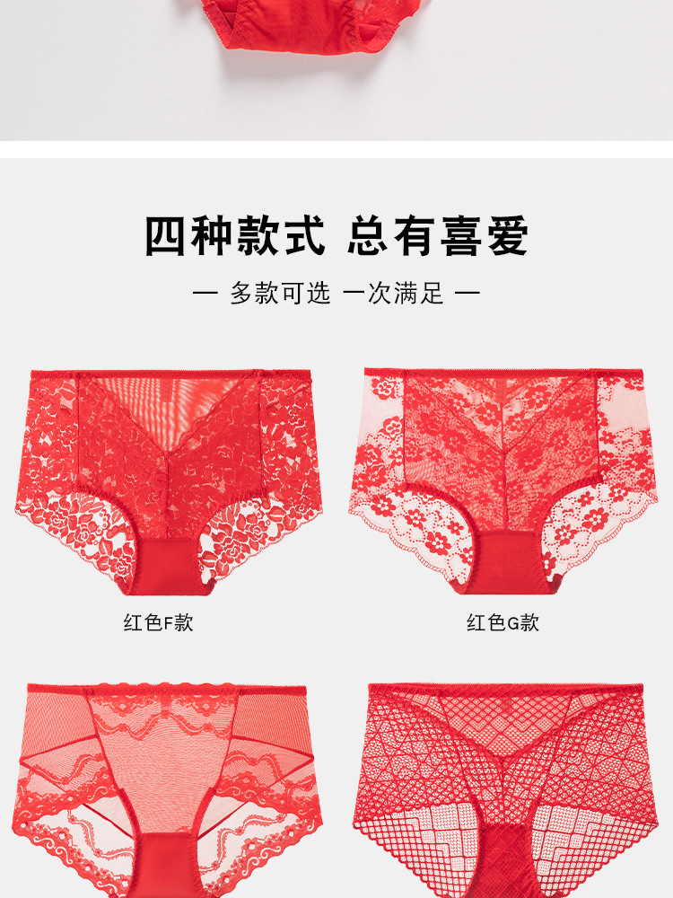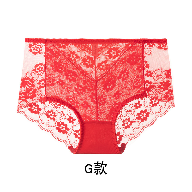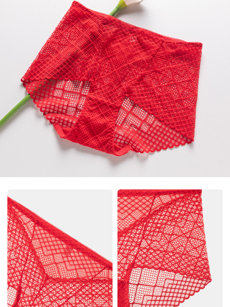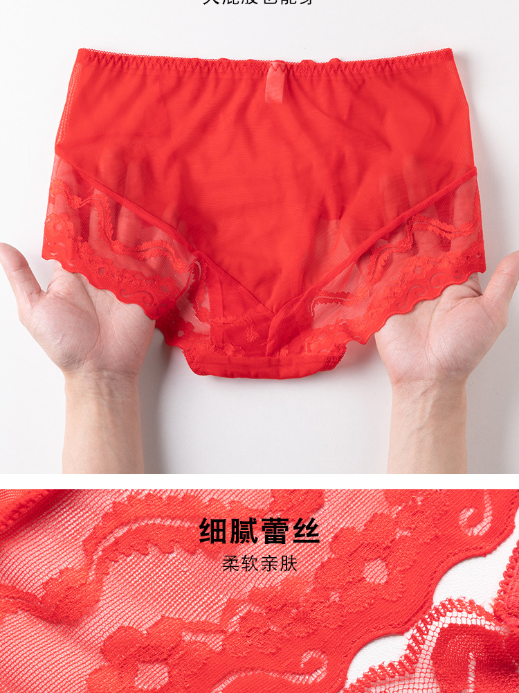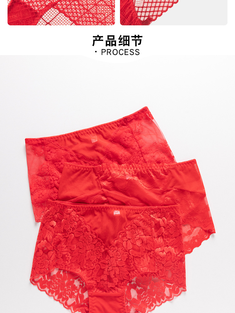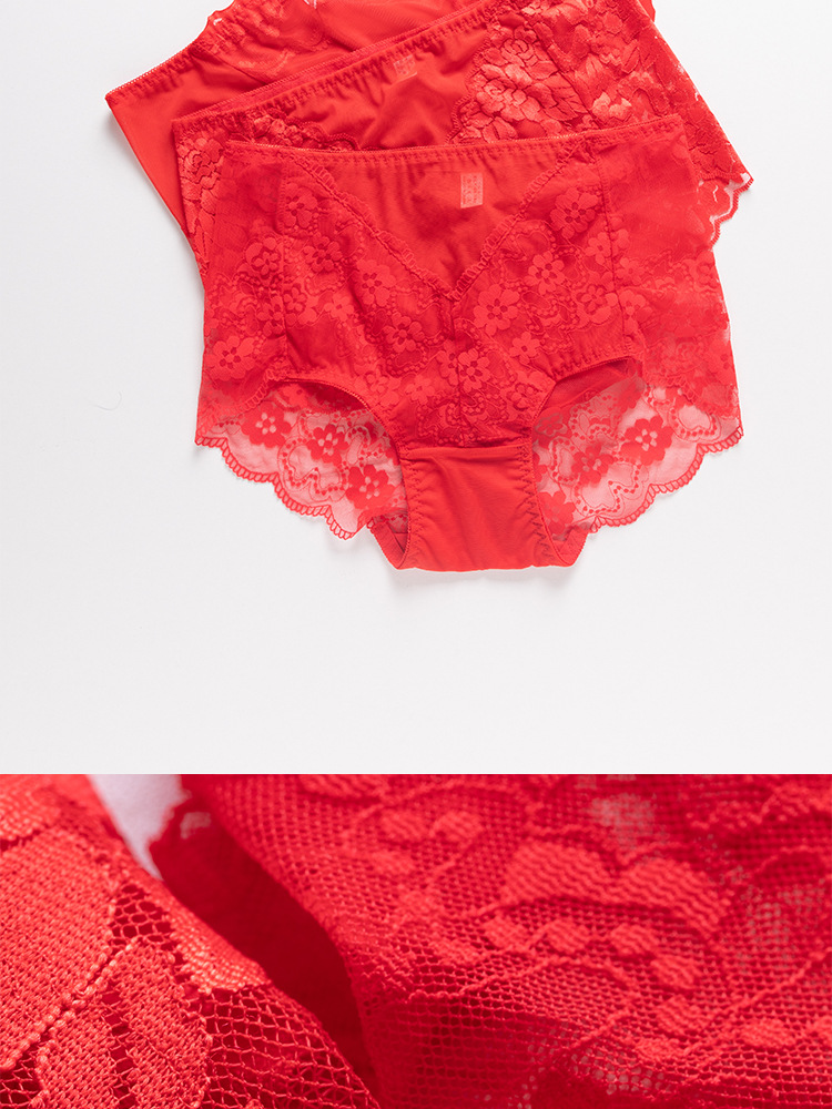 브닝 니언 빅 레드 웨딩 여성 미드 웨이스트 속옷 여성용 레이스 트레이스 반바지 플러스 사이즈 트레이스 통기성 여성 트라이앵글스토어 가기