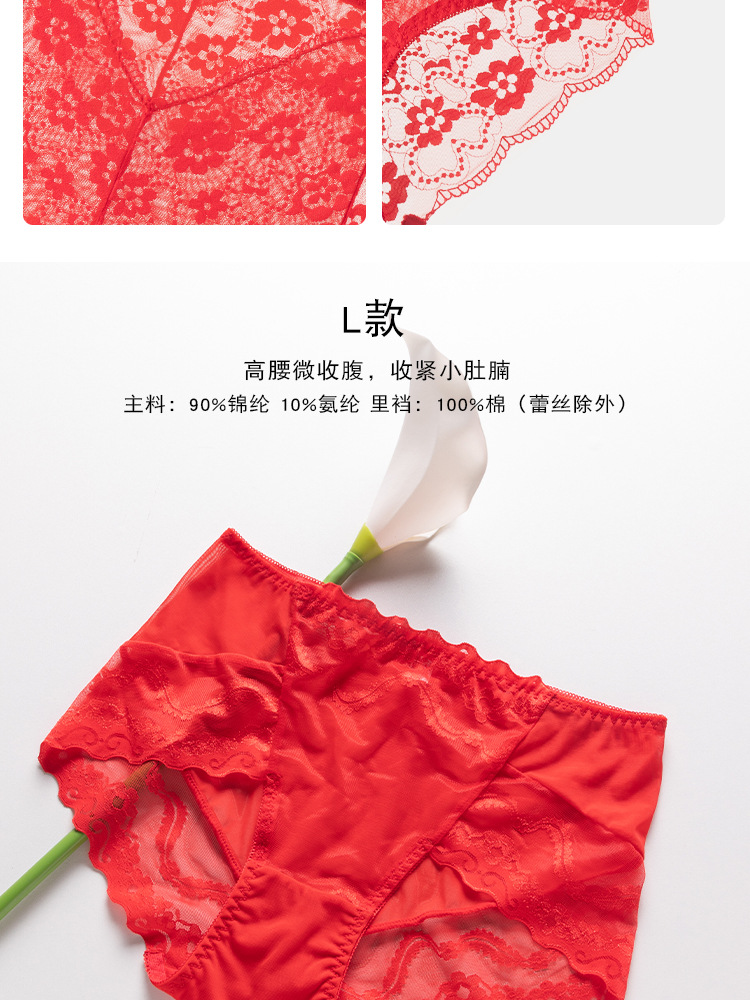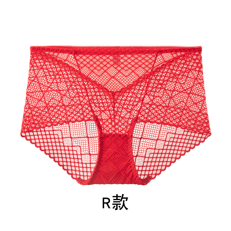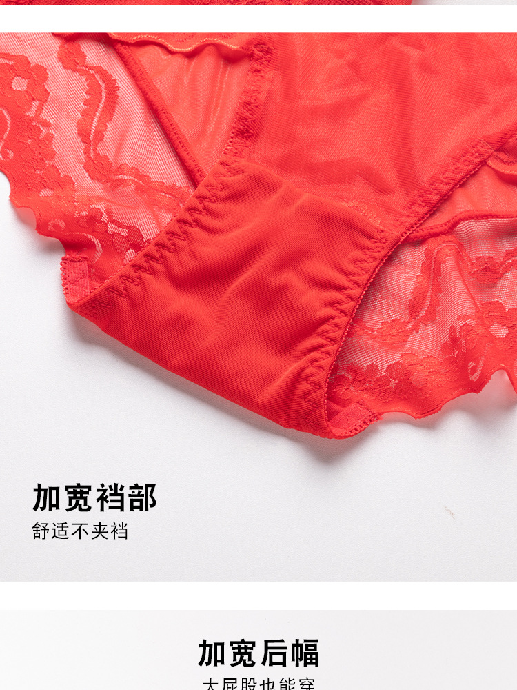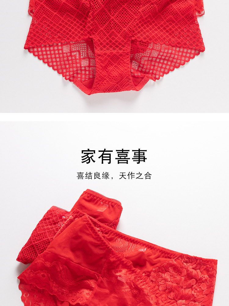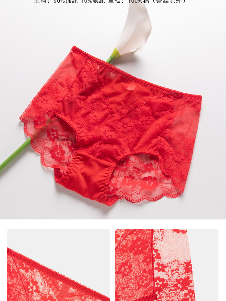 브닝 니언 빅 레드 웨딩 여성 미드 웨이스트 속옷 여성용 레이스 트레이스 반바지 플러스 사이즈 트레이스 통기성 여성 트라이앵글