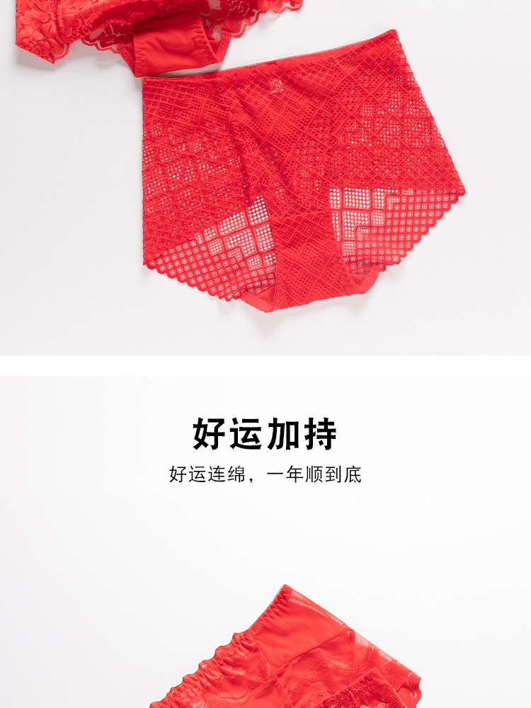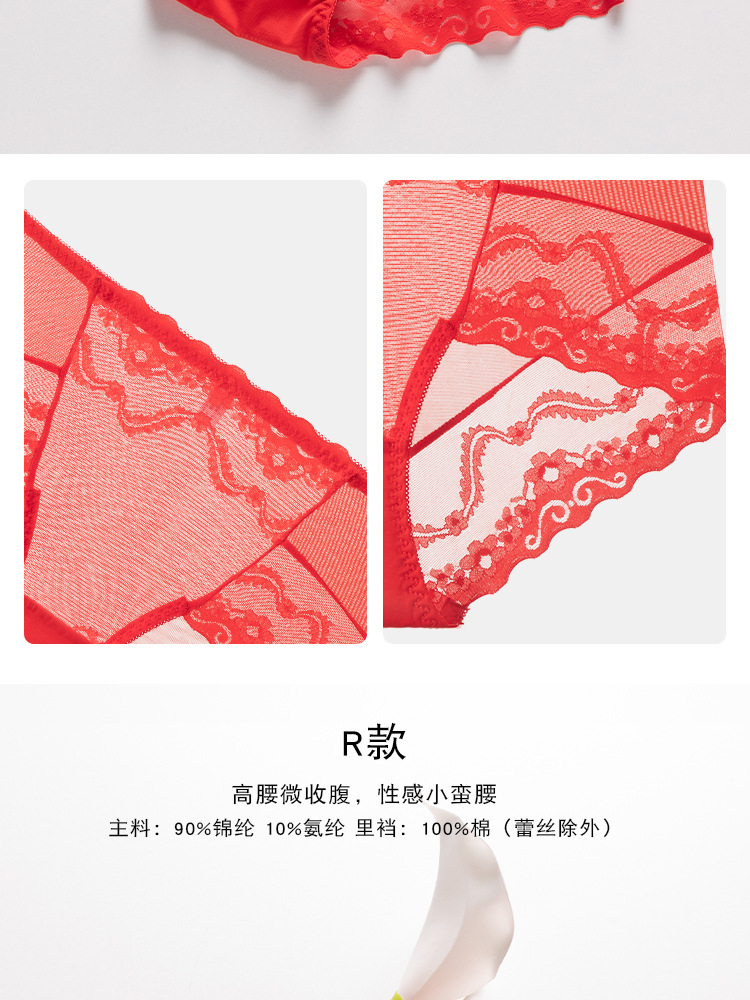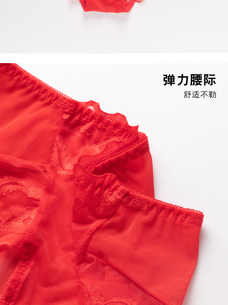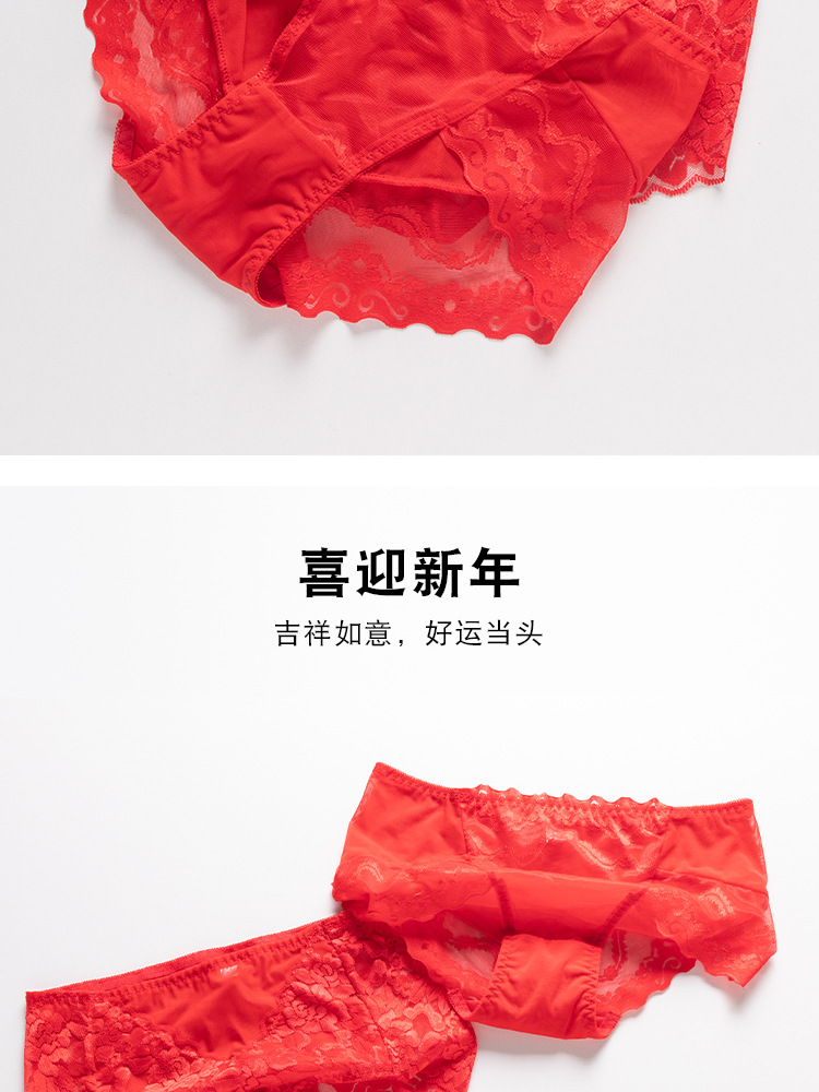 브닝 니언 빅 레드 웨딩 여성 미드 웨이스트 속옷 여성용 레이스 트레이스 반바지 플러스 사이즈 트레이스 통기성 여성 트라이앵글