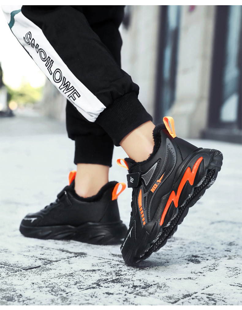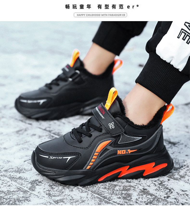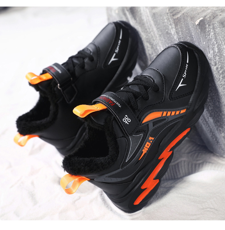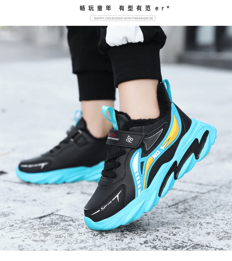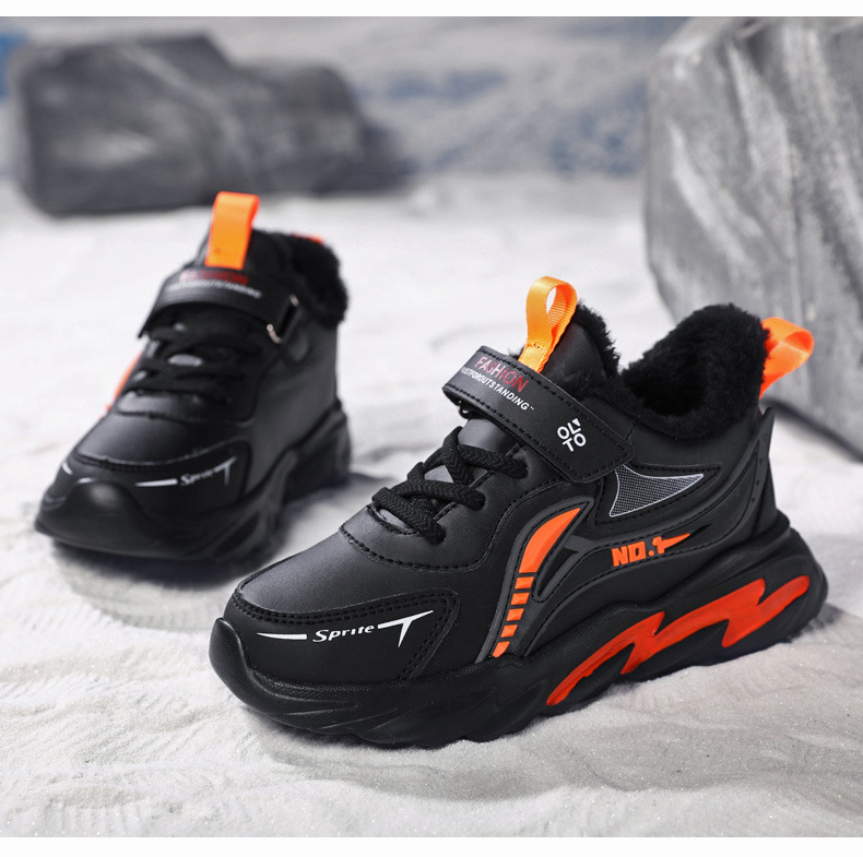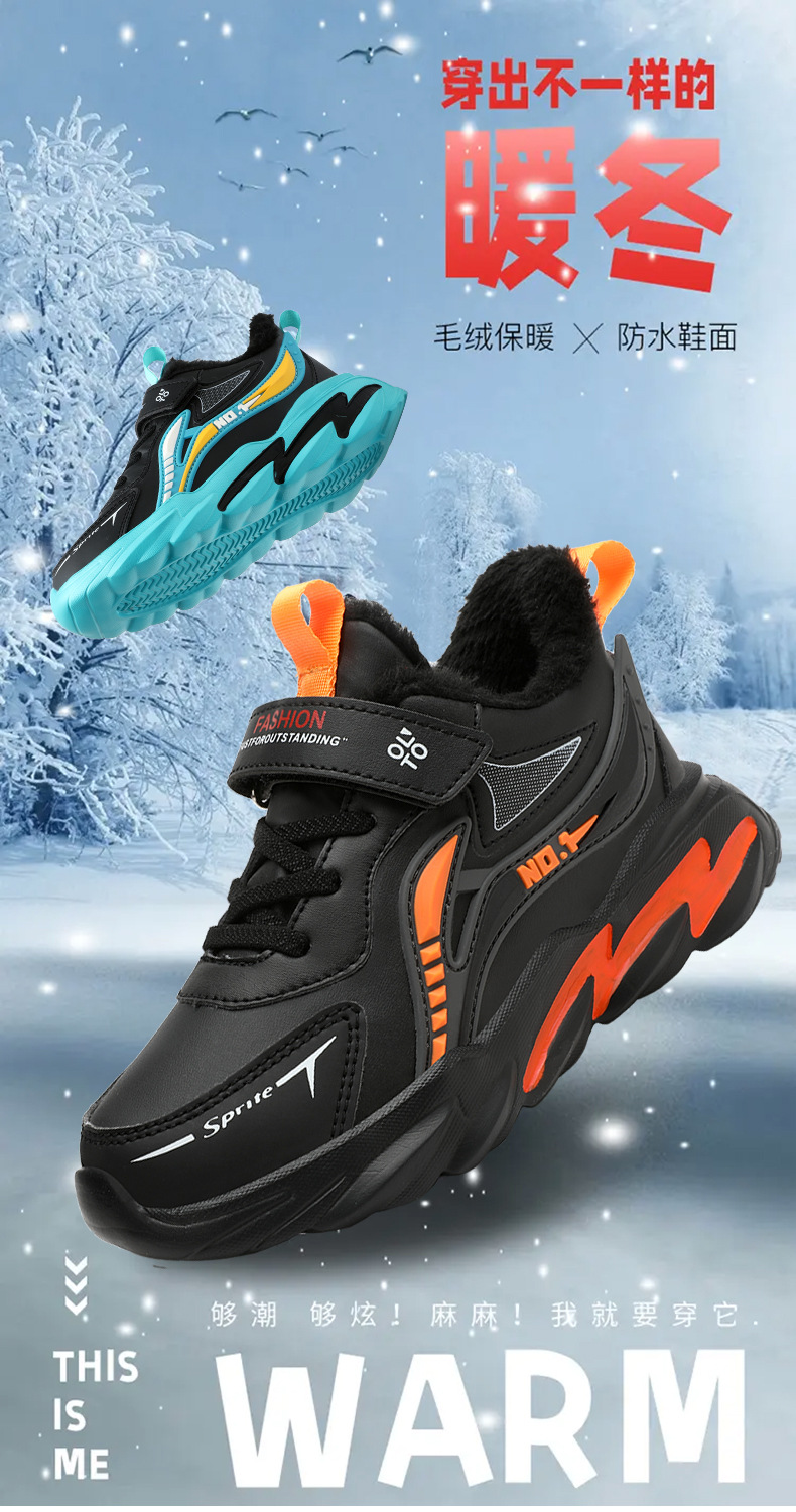 남자 신발 2024 겨울 새 가죽 방수 미끄럼 방지 어린이 운동화 기모 따뜻한면 어린이 신발 조수