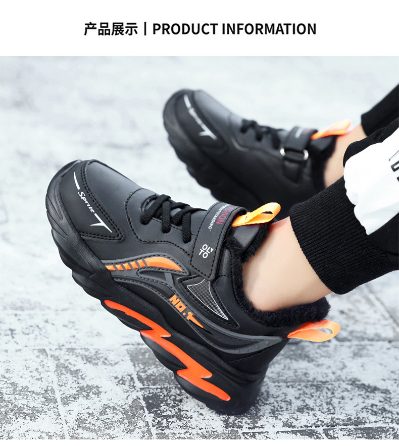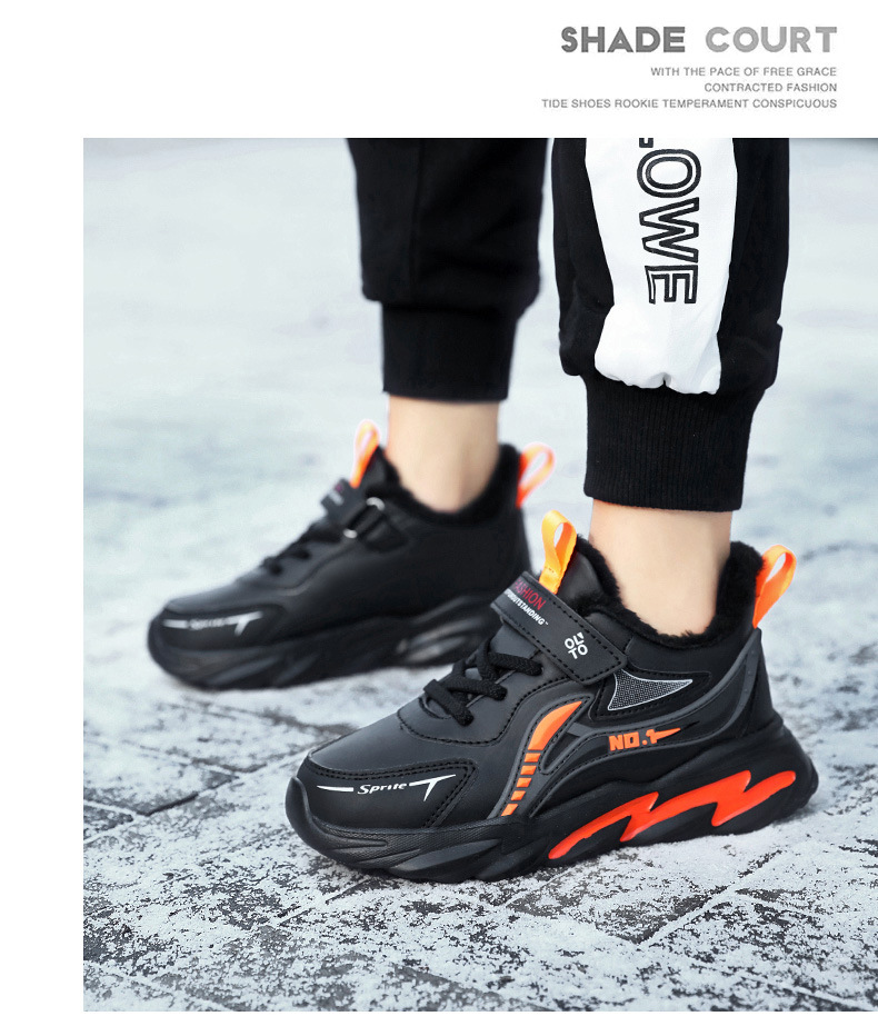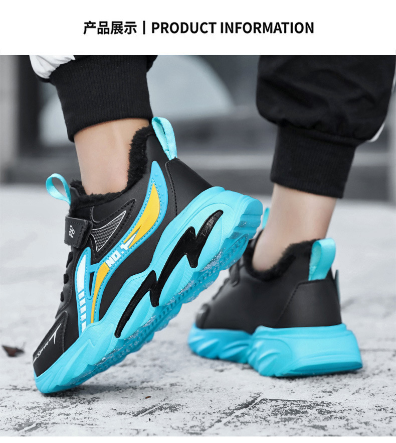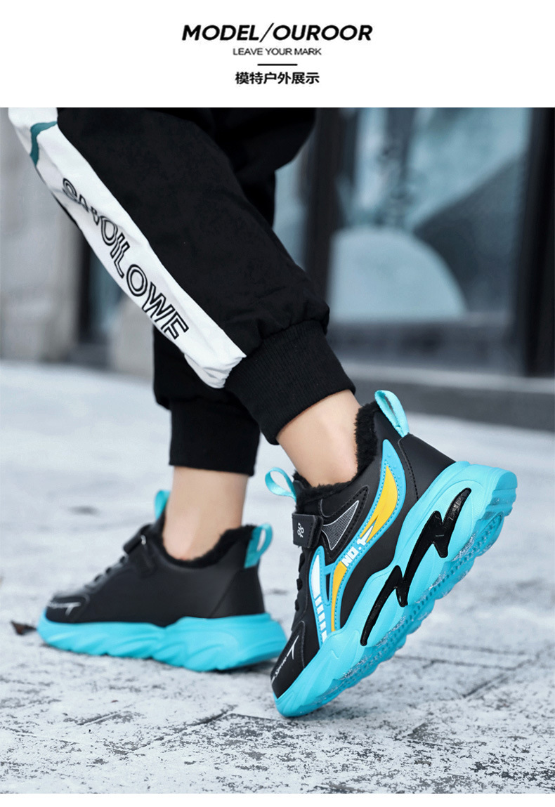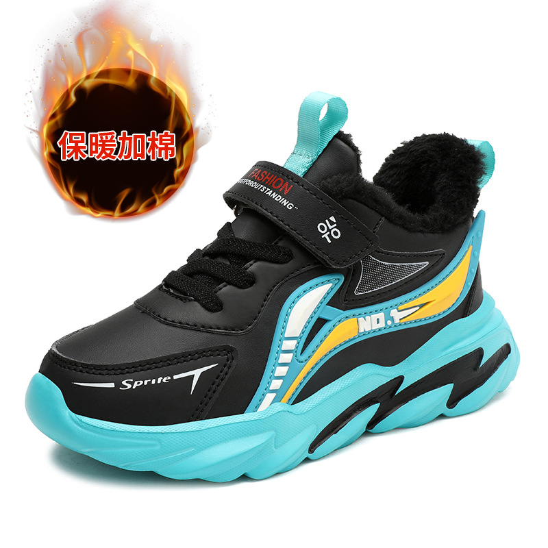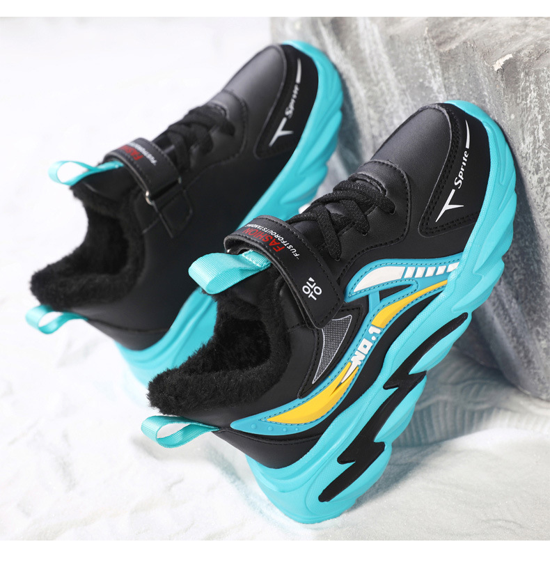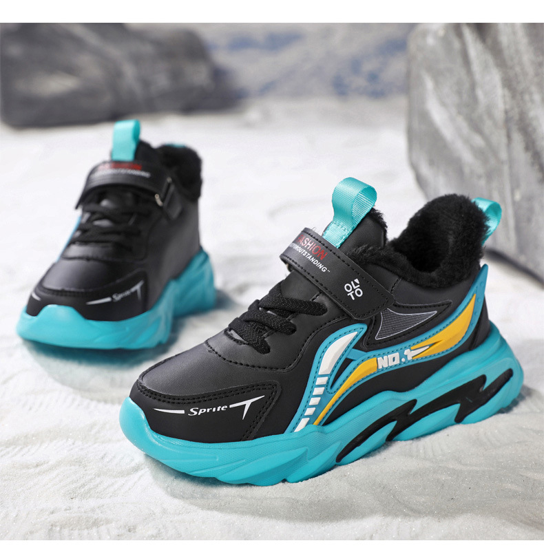 남자 신발 2024 겨울 새 가죽 방수 미끄럼 방지 어린이 운동화 기모 따뜻한면 어린이 신발 조수