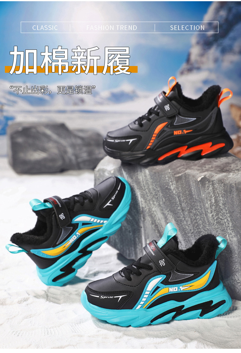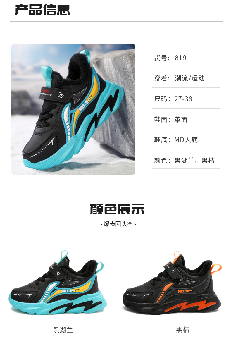 남자 신발 2024 겨울 새 가죽 방수 미끄럼 방지 어린이 운동화 기모 따뜻한면 어린이 신발 조수스토어 가기