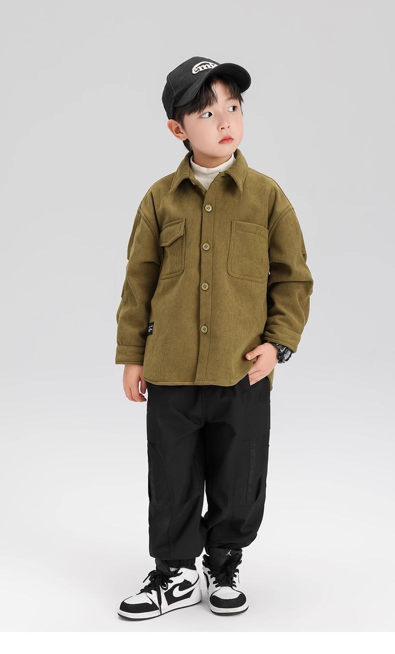 Zuoxi 아동 의류 소년 벨벳 셔츠 가을, 겨울 아동 셔츠 재킷 두꺼운 2025 새로운 스타일 소년 긴팔 스타일스토어 가기