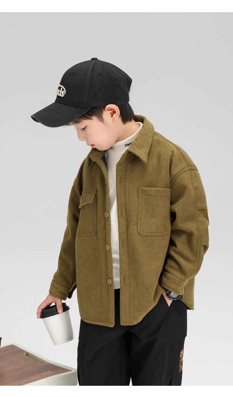 Zuoxi 아동 의류 소년 벨벳 셔츠 가을, 겨울 아동 셔츠 재킷 두꺼운 2025 새로운 스타일 소년 긴팔 스타일