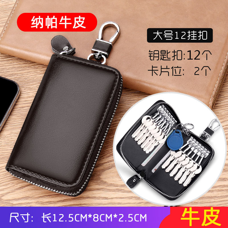 2024 새로운 지퍼 대용량 키 가방 남성 가죽 다기능 실용적인 자동차 키 가방 소 가죽 키 직접 판매스토어 가기