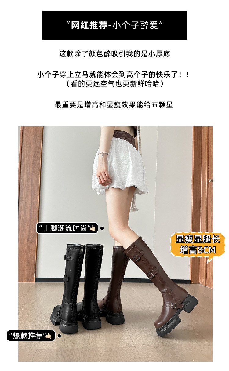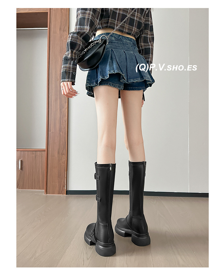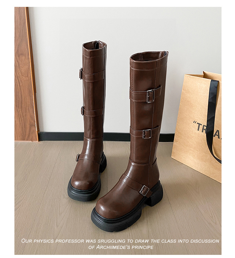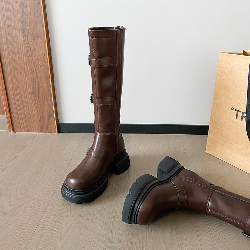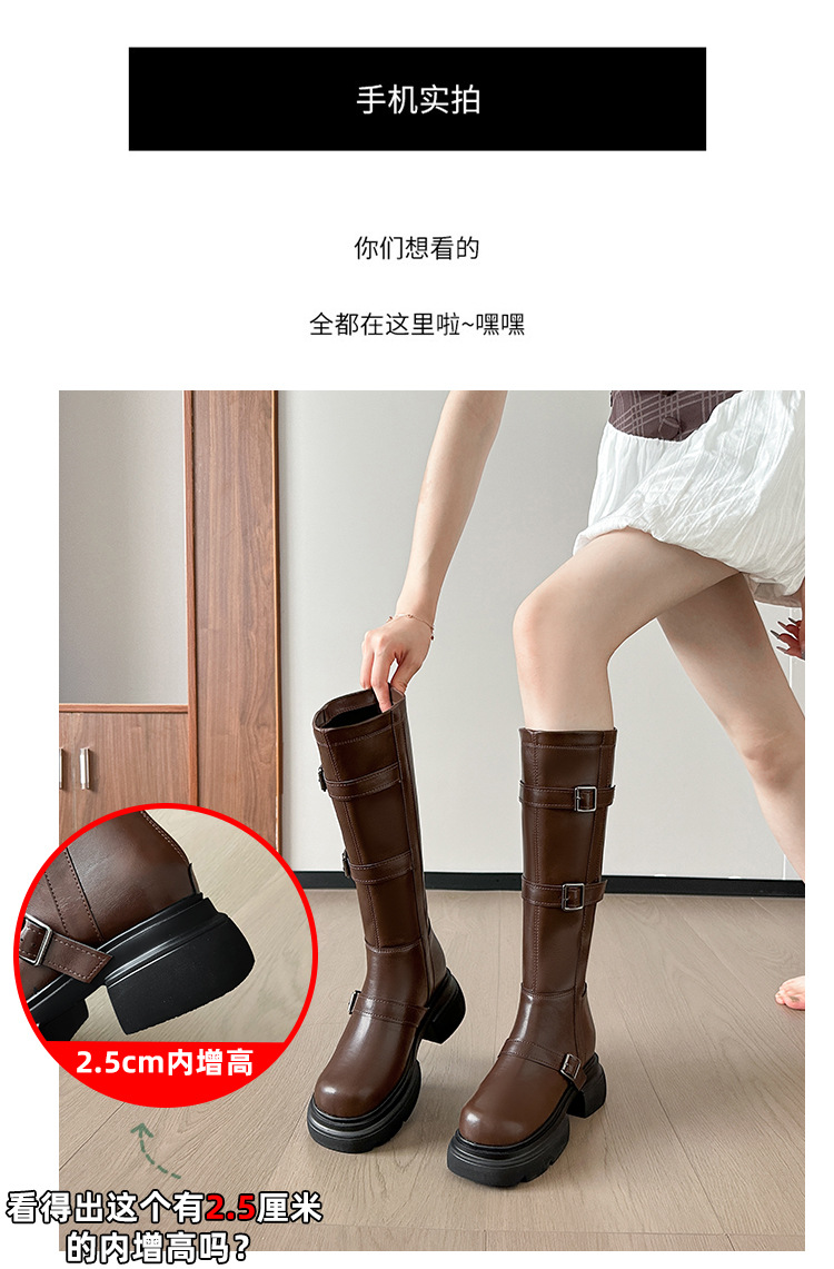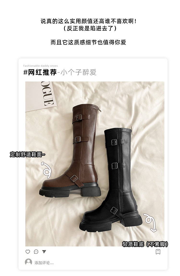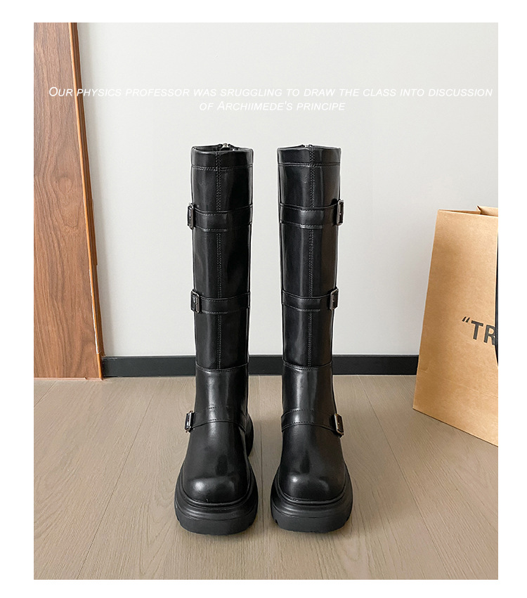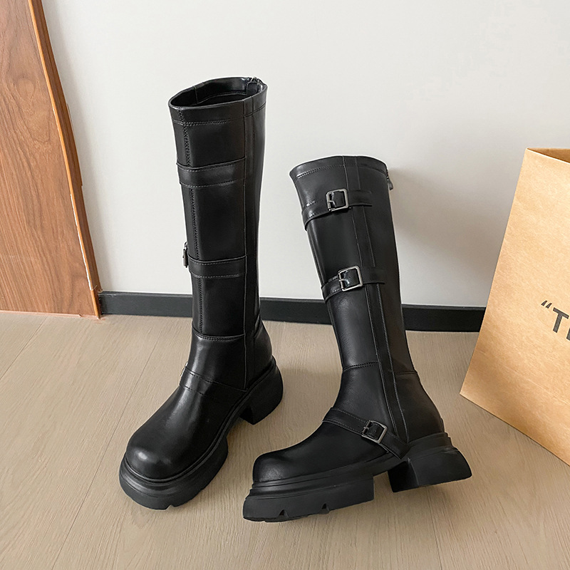 두꺼운 바닥 내부 하이트닝 버클 나이트 부츠 여성 높은 영국 스타일 마틴 부츠 가을 및 겨울 새로운 도착 작은 롱 부츠스토어 가기