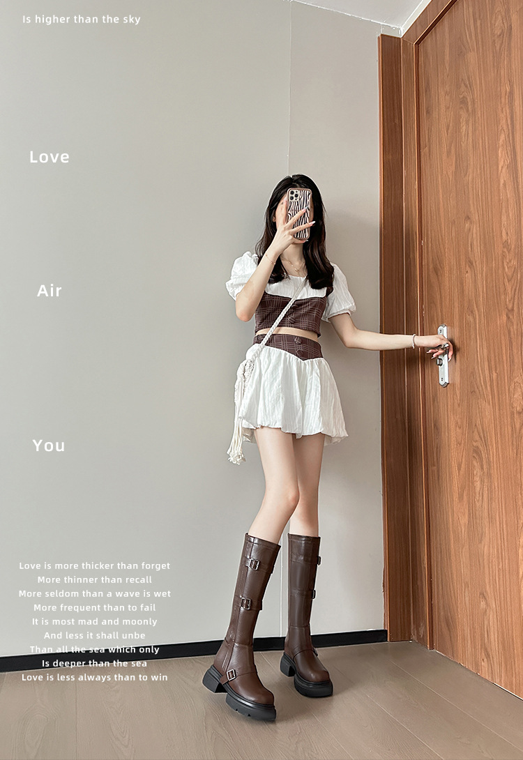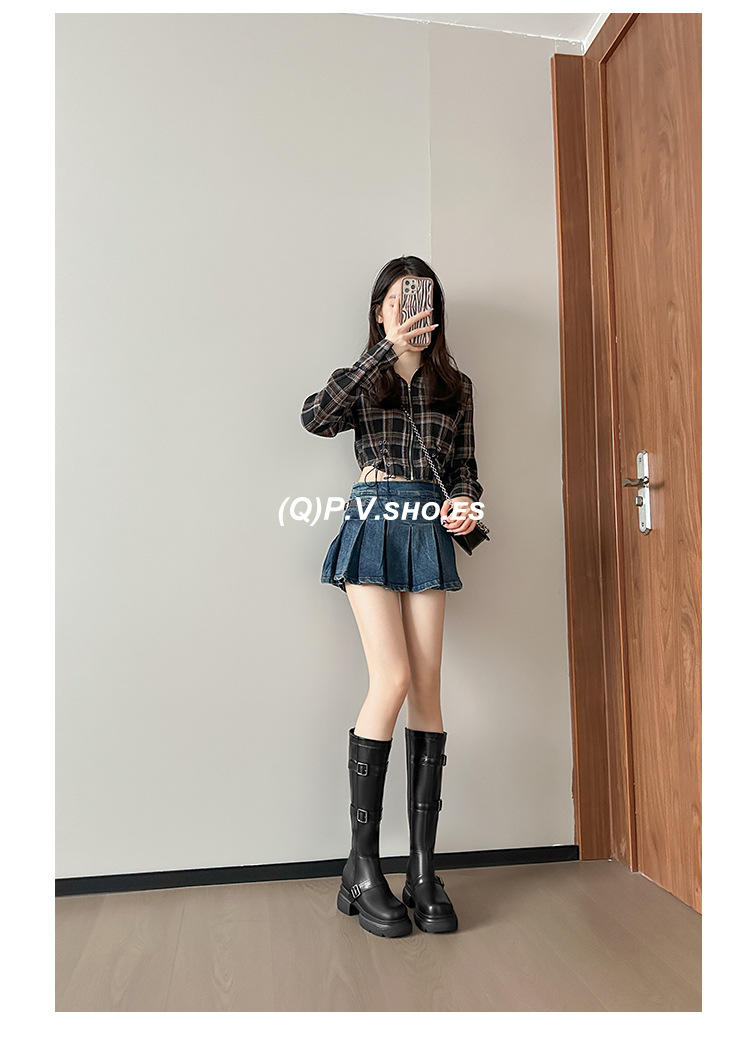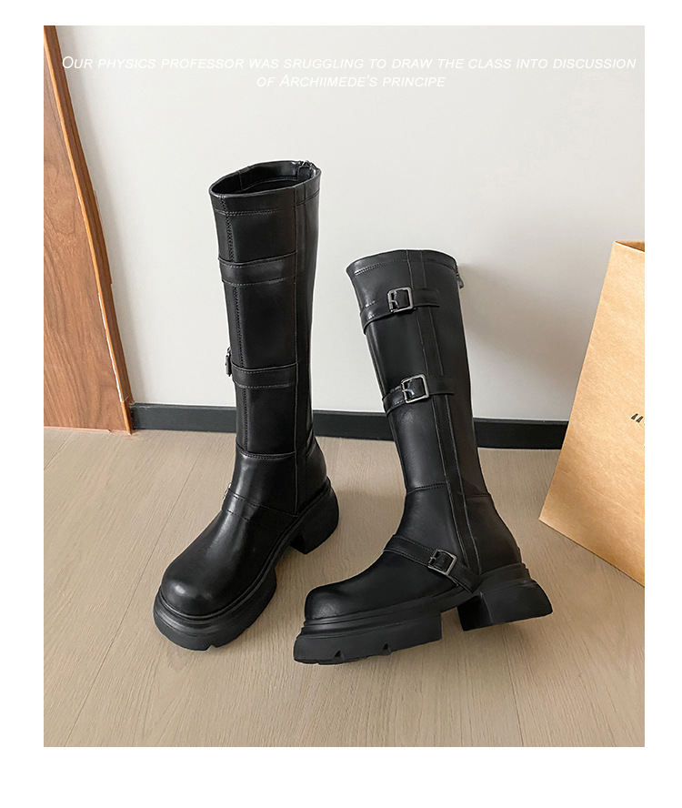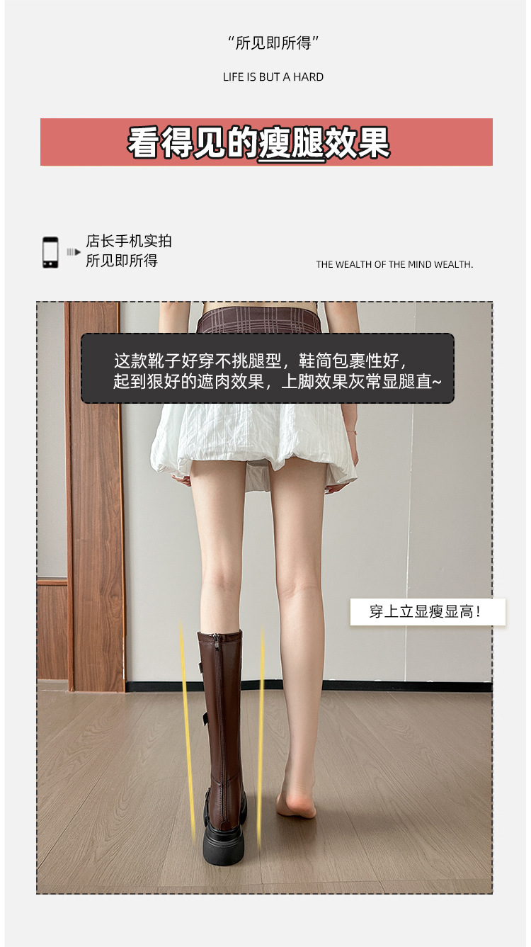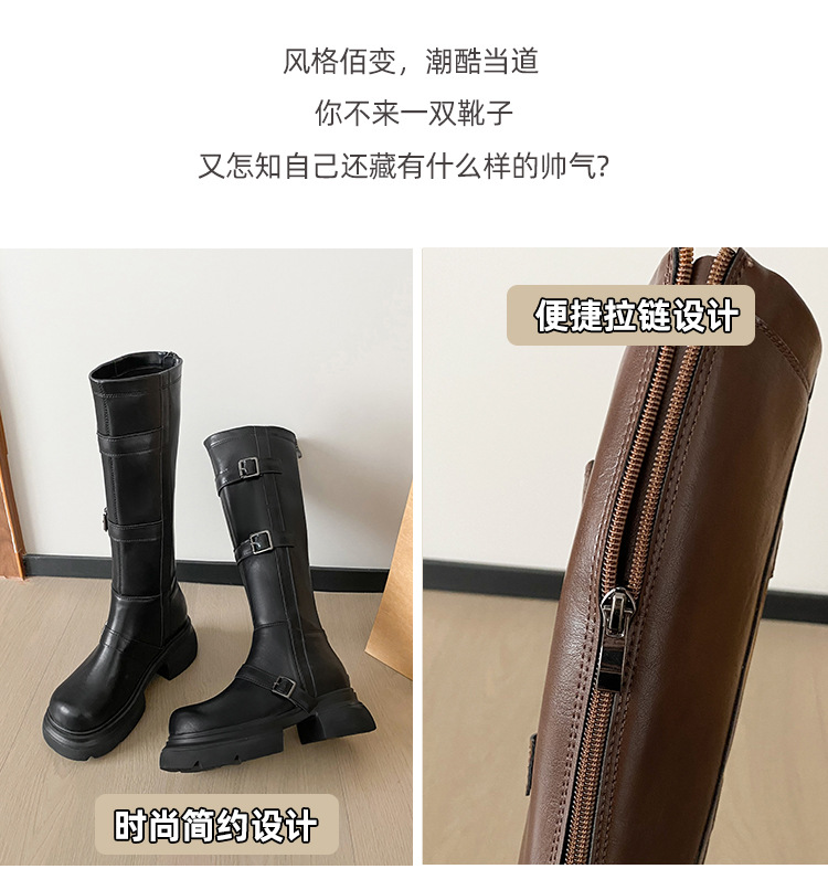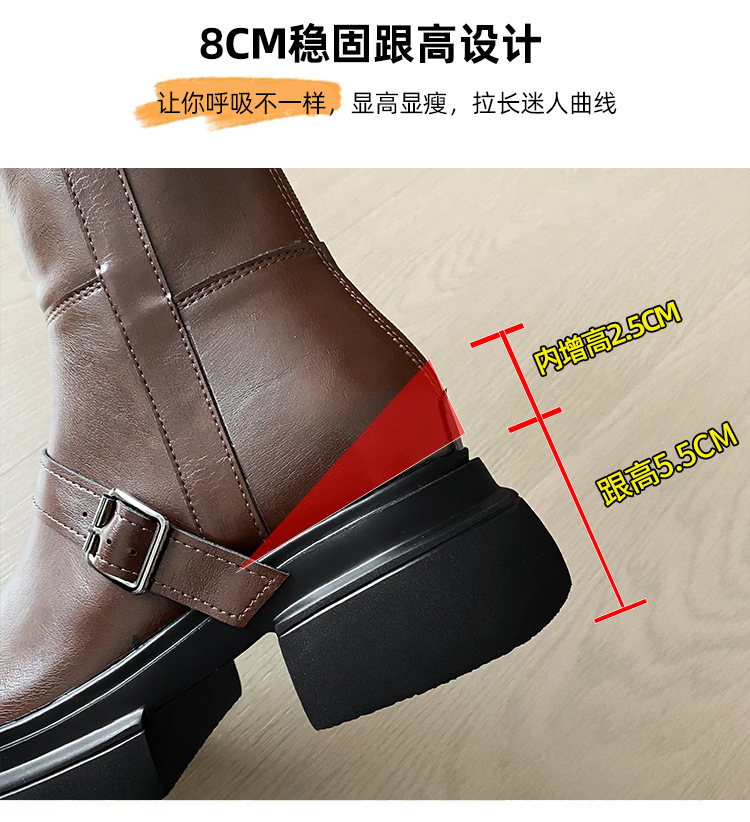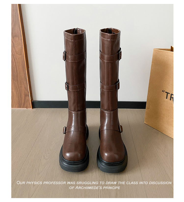 두꺼운 바닥 내부 하이트닝 버클 나이트 부츠 여성 높은 영국 스타일 마틴 부츠 가을 및 겨울 새로운 도착 작은 롱 부츠스토어 가기