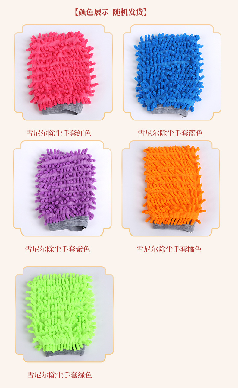 • 컬러 엣지가 있는 셔닐 암호화 모피 먼지 제거 장갑