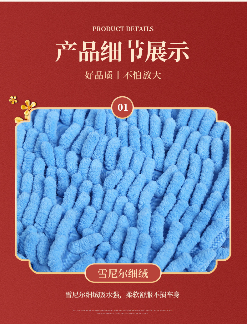 Chenille 먼지 제거 장갑 양면 도매 흡수성 청소 도구 자동차 세척 수십 거품 세차 장갑 재고