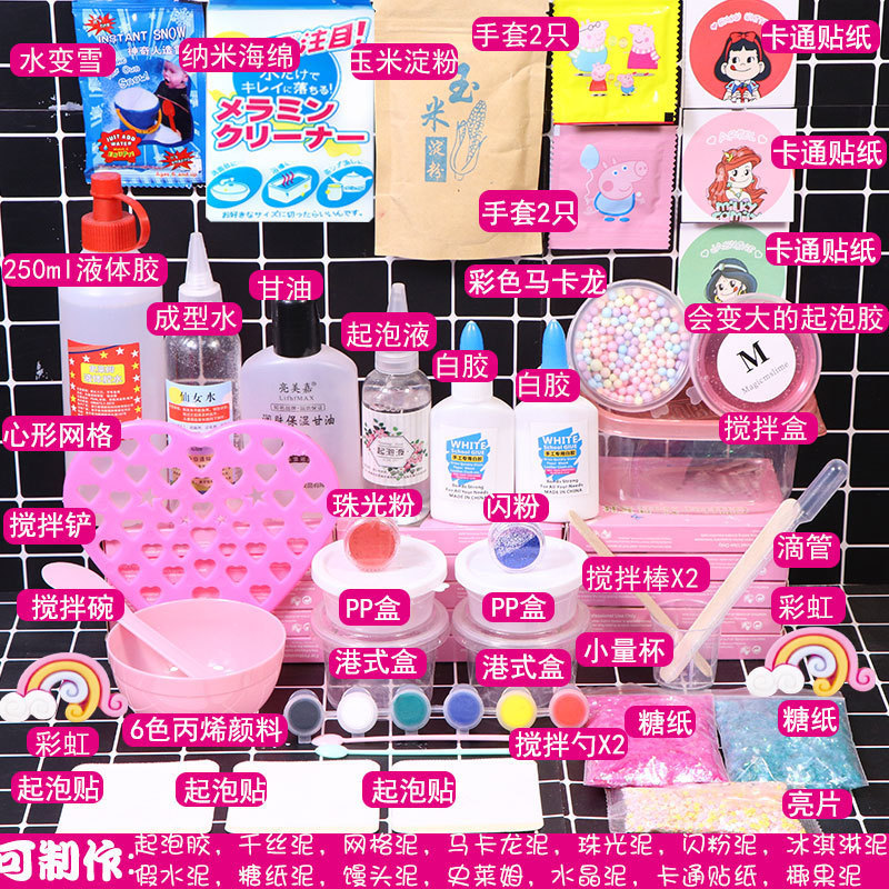 물집 접착제 점액 크리스탈 진흙 점액 저렴한 풀 세트 재료 패키지 세트 수제 슬라임 블리스 터 접착제