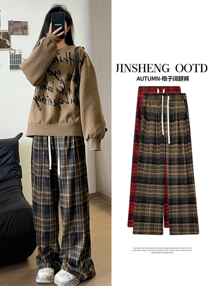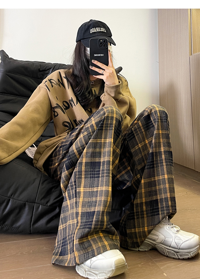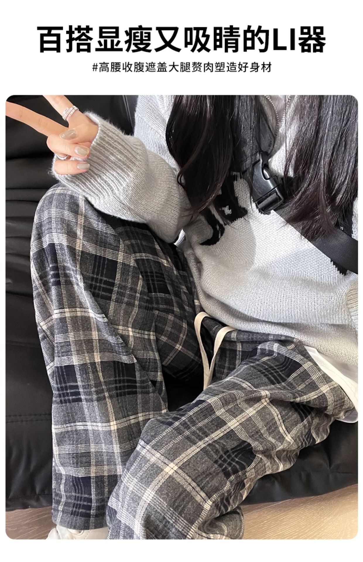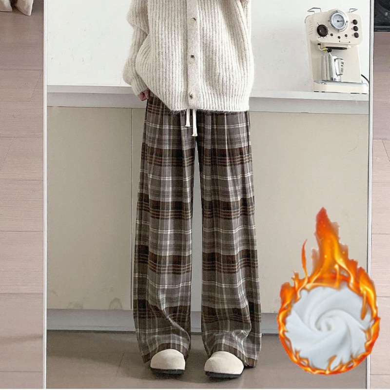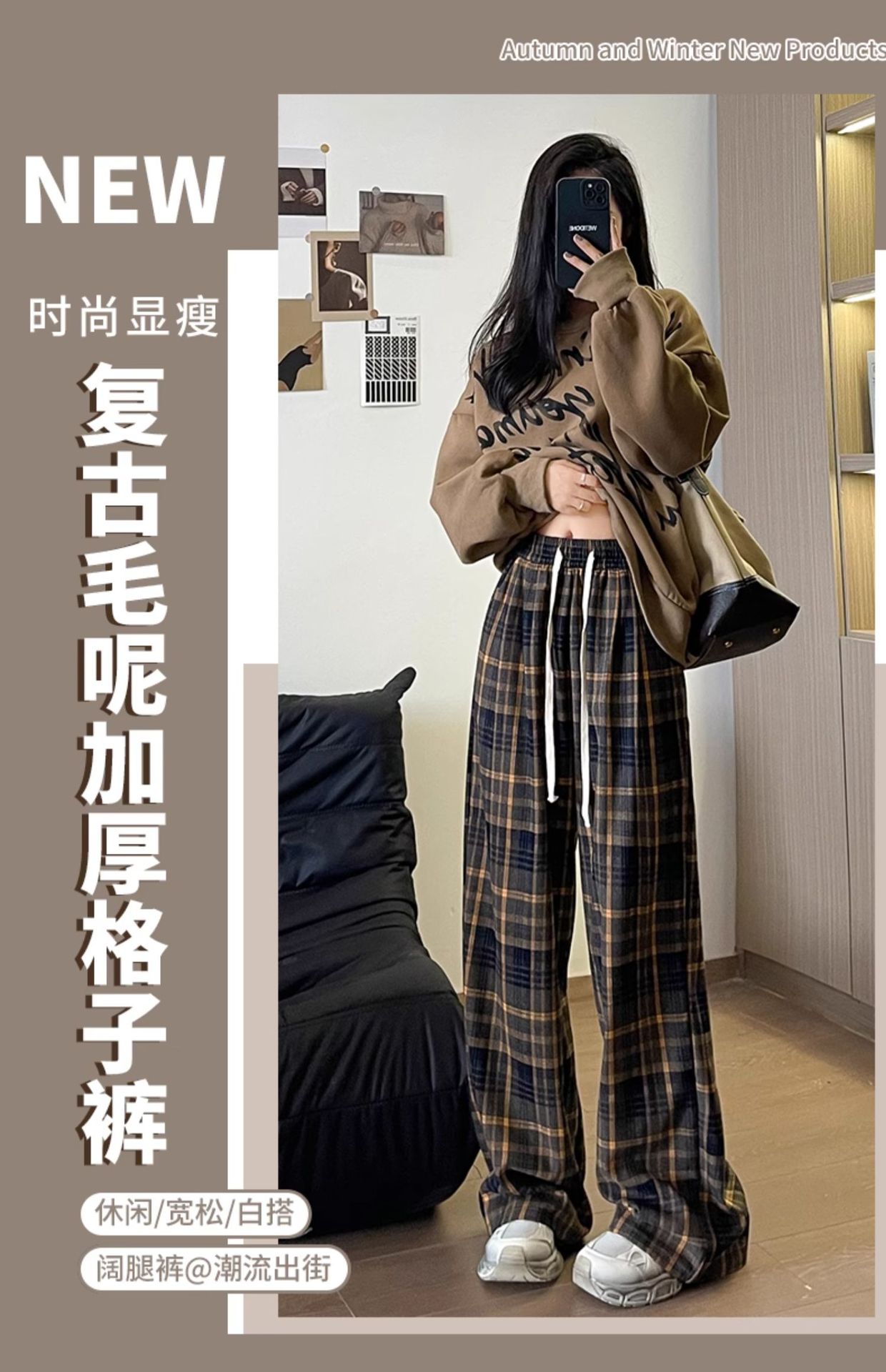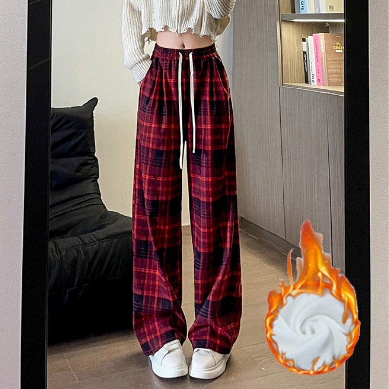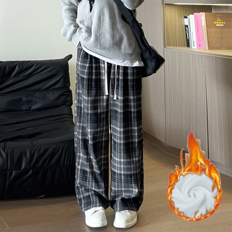 가을과 겨울 미국 격자 무늬 바지 어린이 투약 캐주얼 스트레이트 기모 두꺼운 넓은 다리 바지 Bf 게으른 스타일 패션 바지스토어 가기