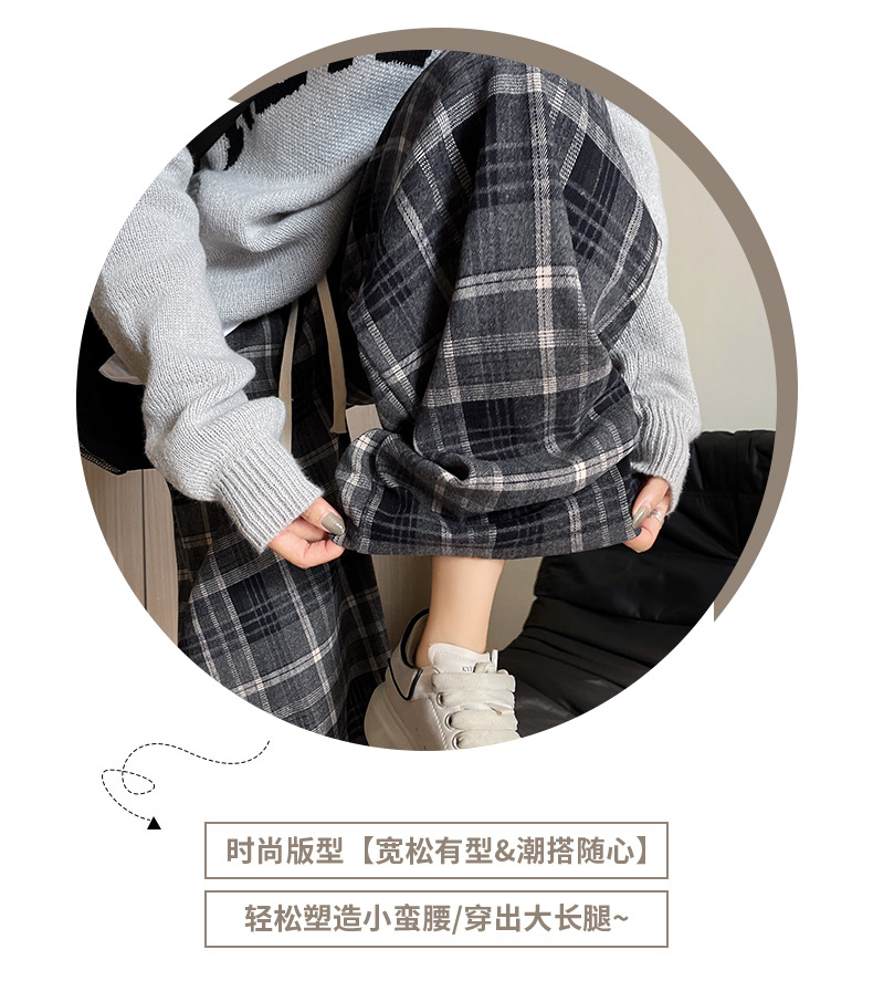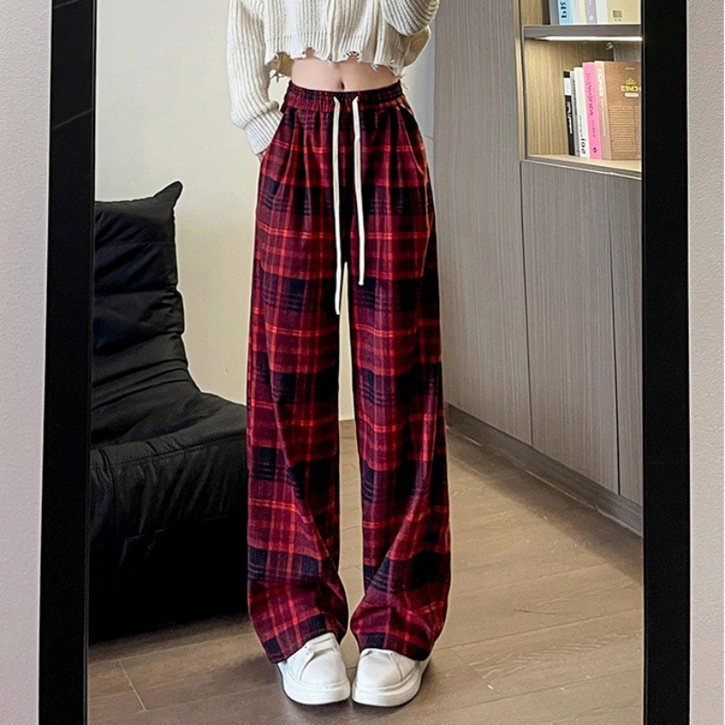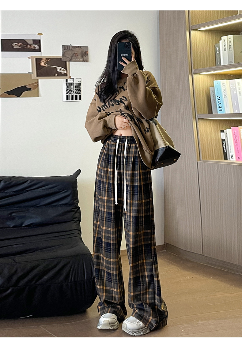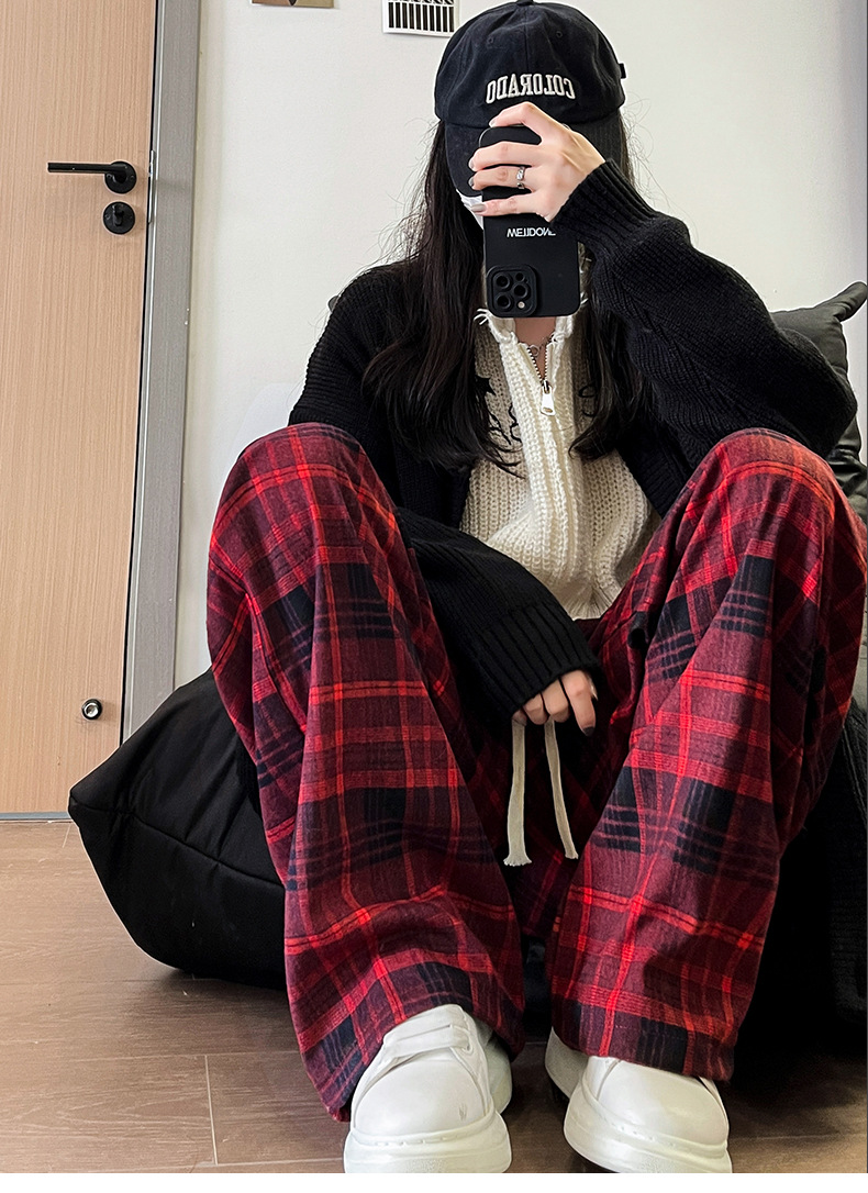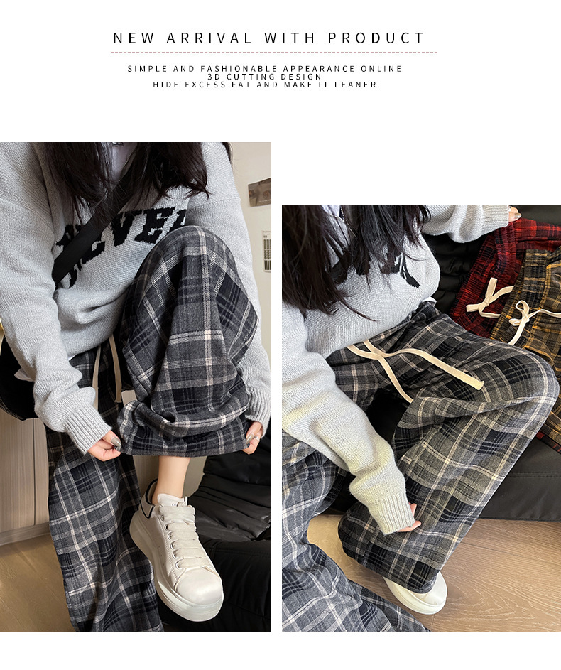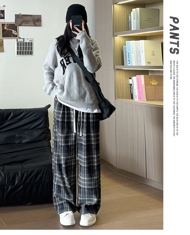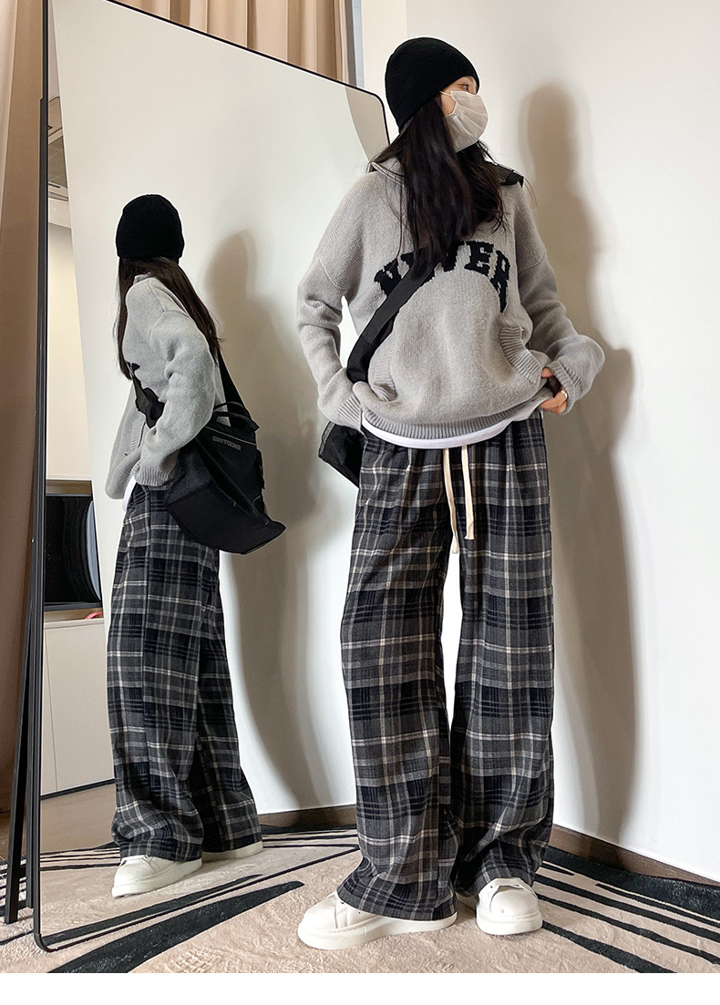 가을과 겨울 미국 격자 무늬 바지 어린이 투약 캐주얼 스트레이트 기모 두꺼운 넓은 다리 바지 Bf 게으른 스타일 패션 바지스토어 가기