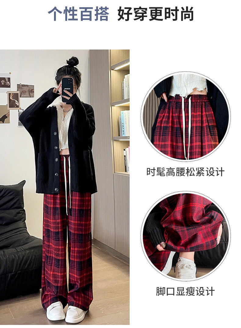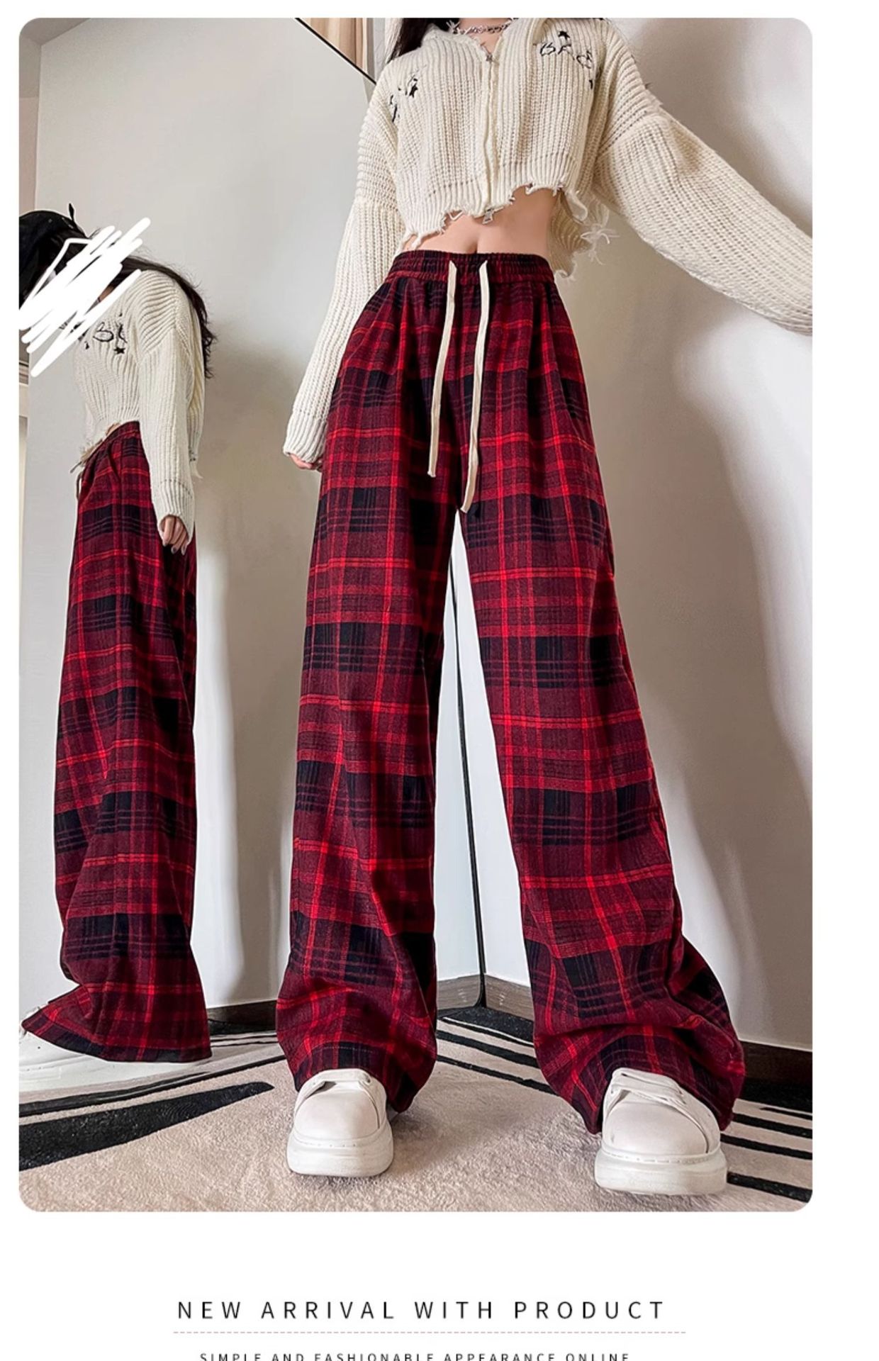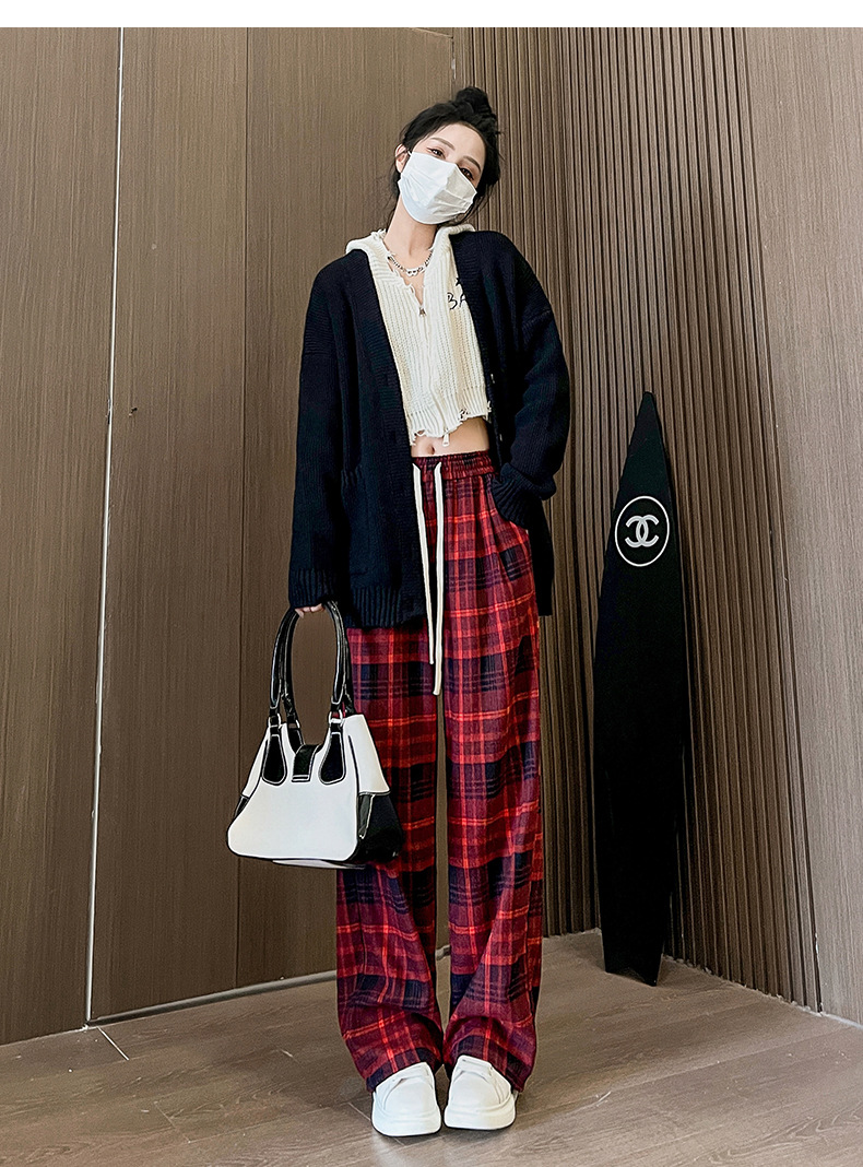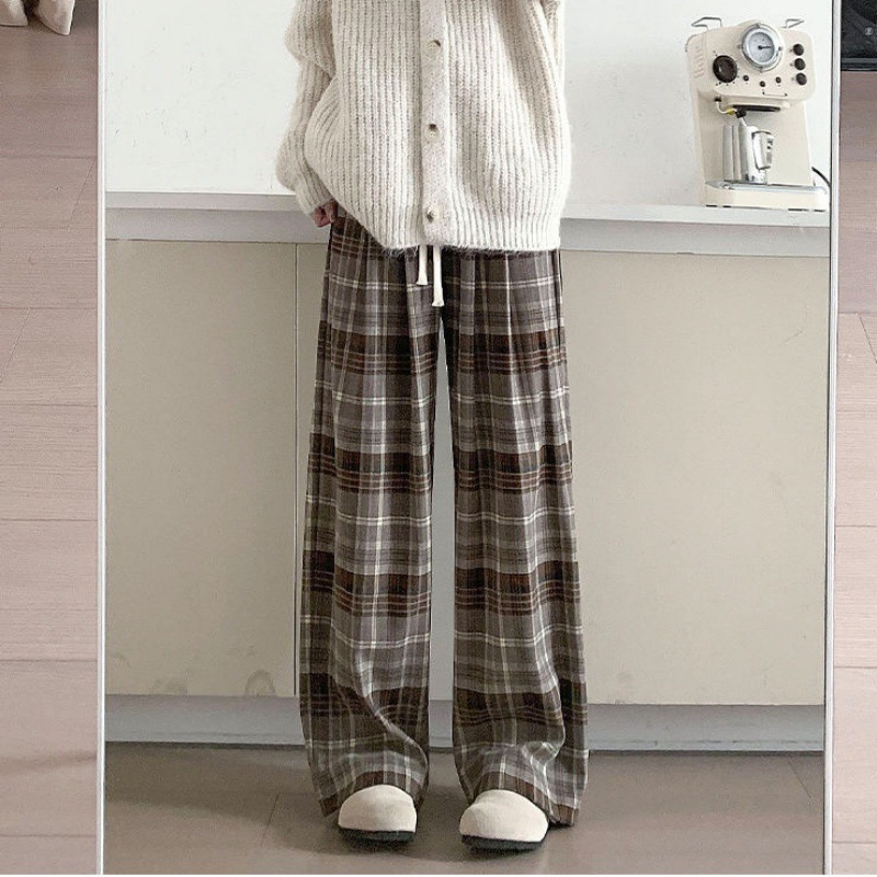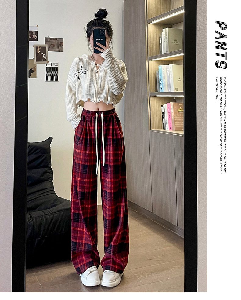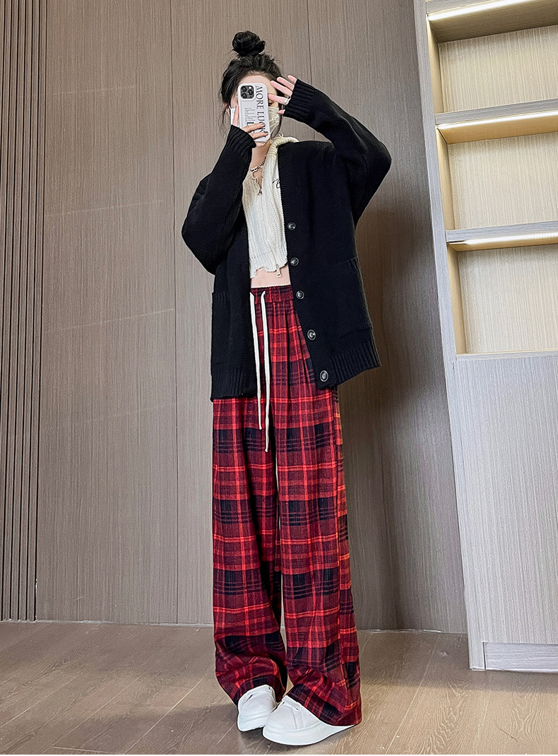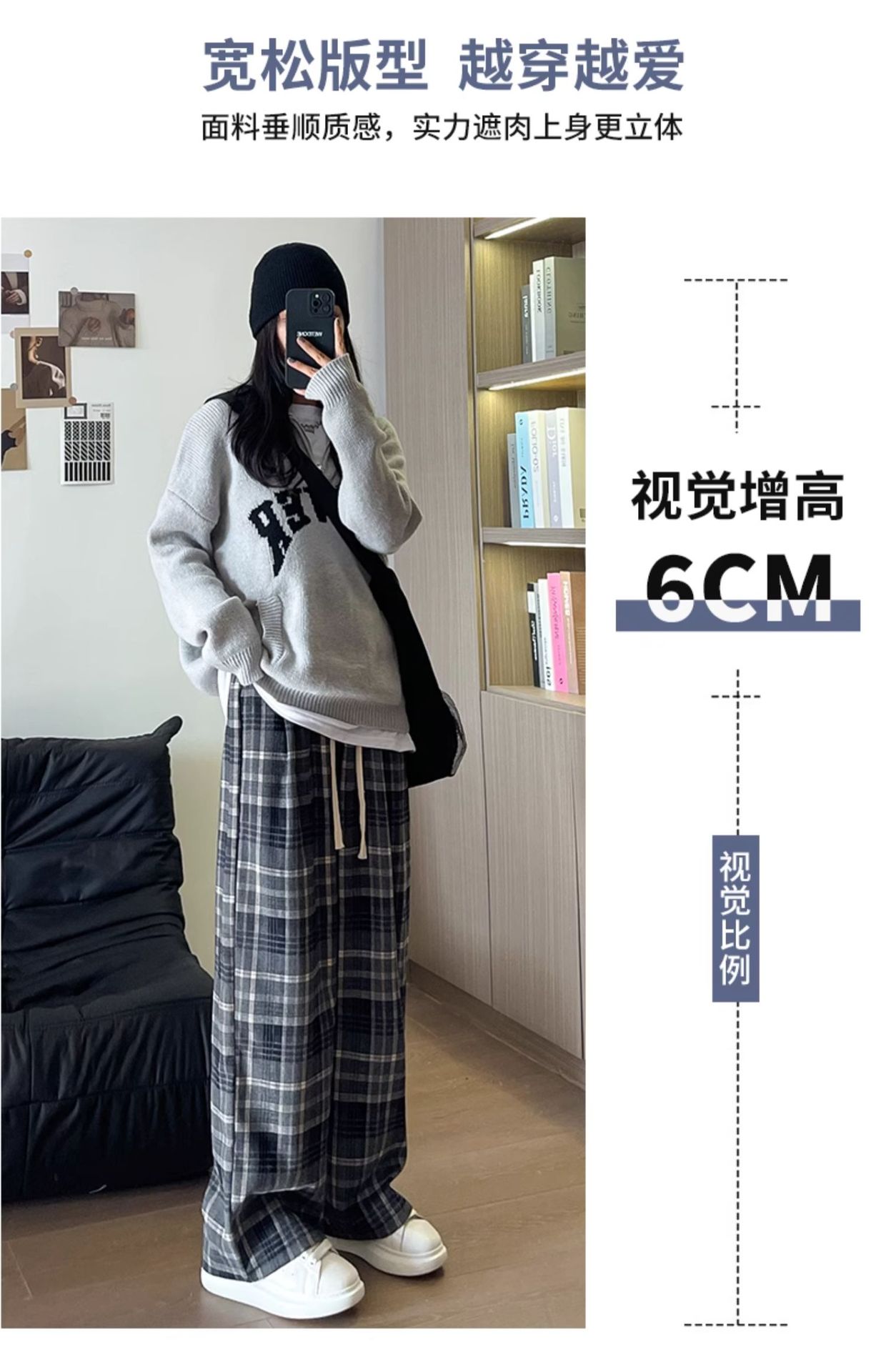 가을과 겨울 미국 격자 무늬 바지 어린이 투약 캐주얼 스트레이트 기모 두꺼운 넓은 다리 바지 Bf 게으른 스타일 패션 바지스토어 가기