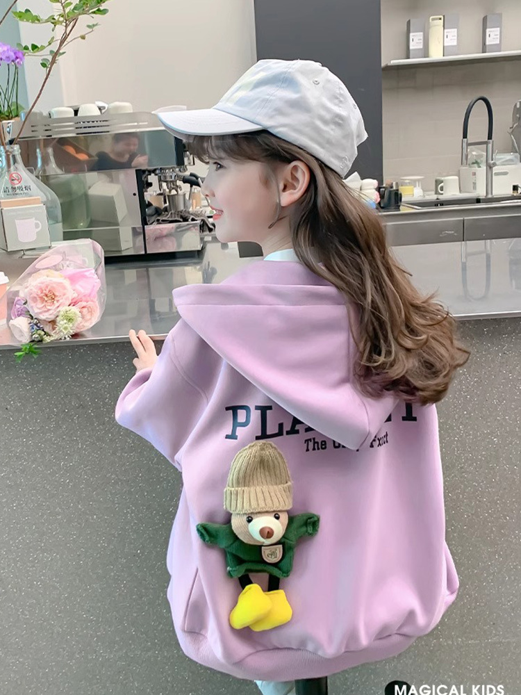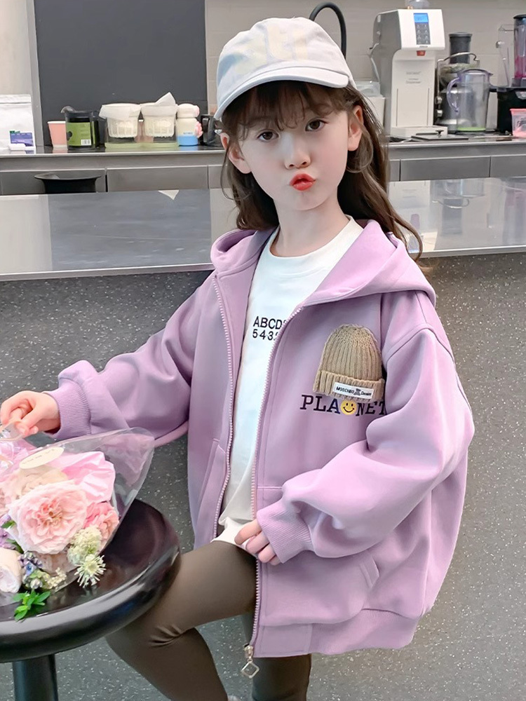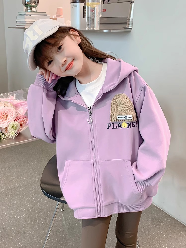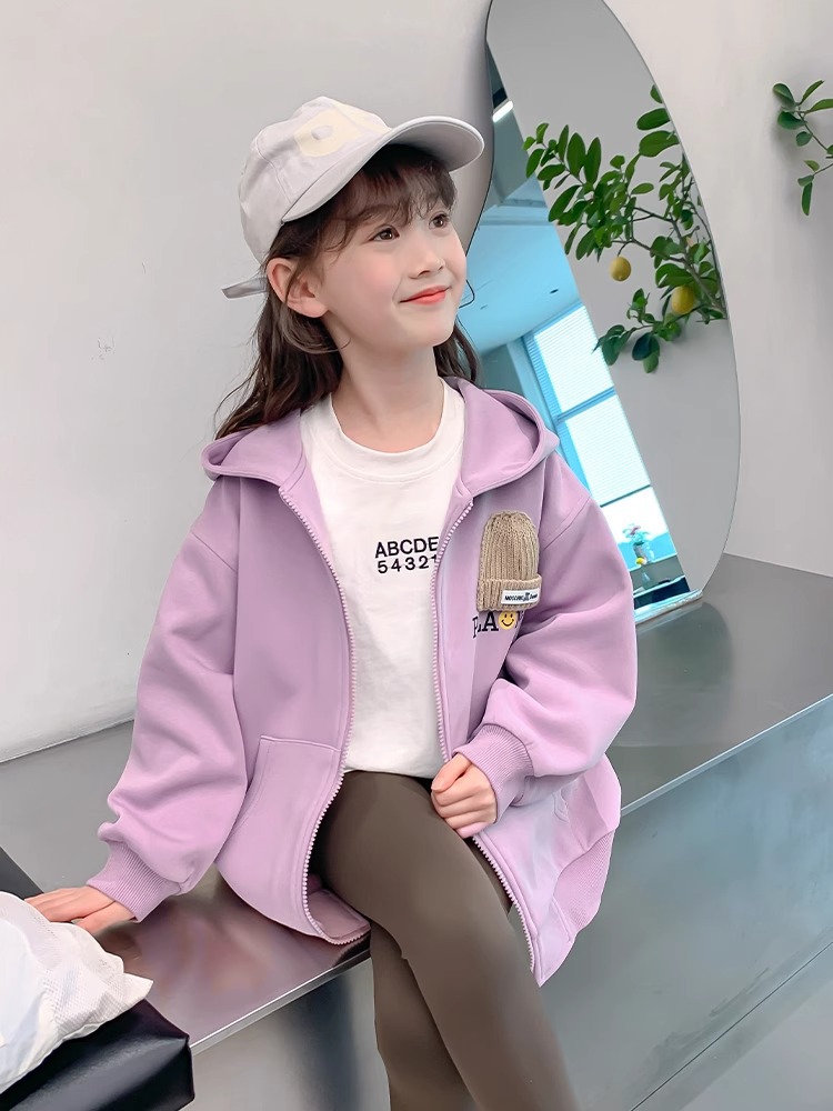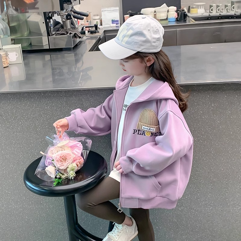 소녀의 코트 봄과 가을 2024 새로운 스타일 서양식 카디건 스웨터 어린이 스포츠 가을 옷 어린 소녀의 후드 탑스토어 가기