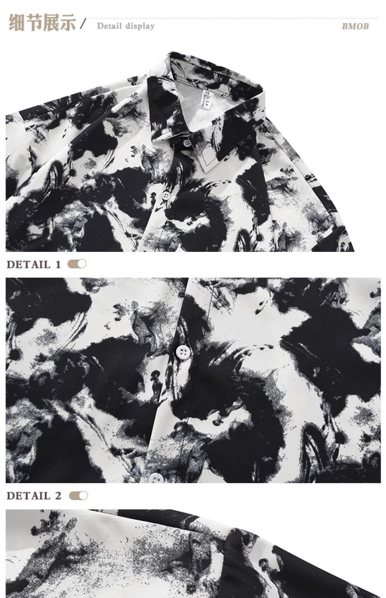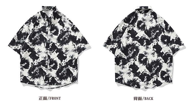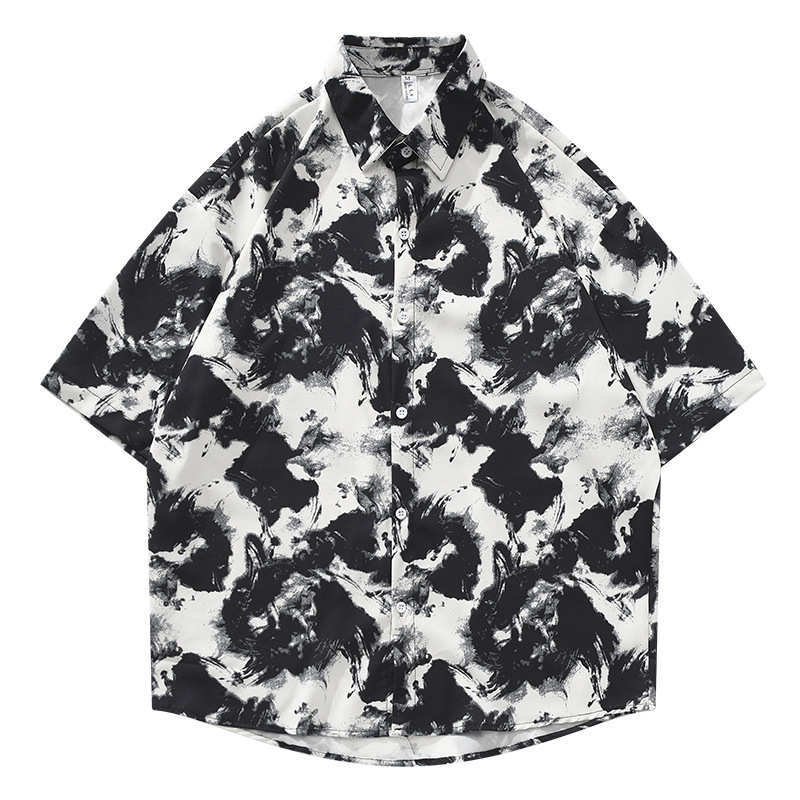 2024 패션 잉크 페인팅 반팔 꽃 셔츠 남성용 트렌디 브랜드 느슨한 해변 휴가 캐주얼 셔츠 코트 트렌디스토어 가기