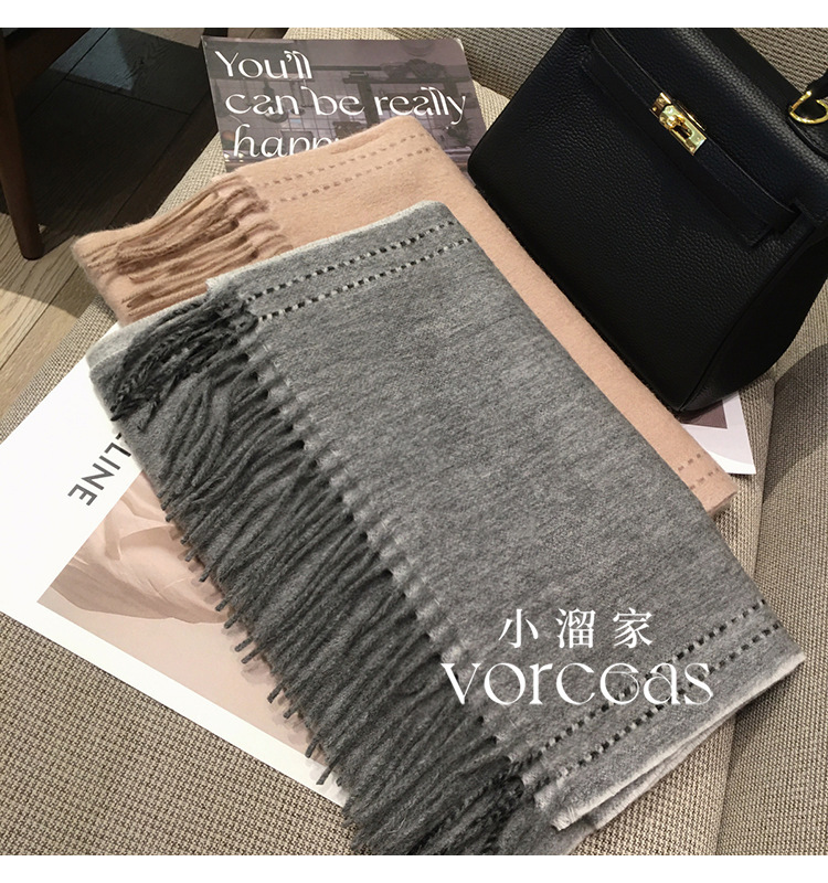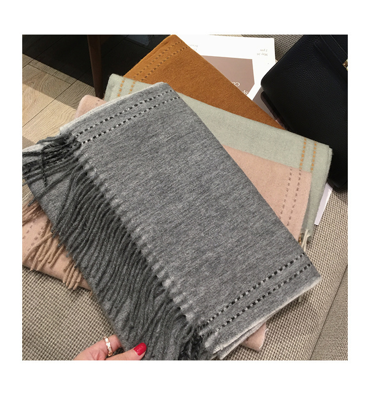 올 매치 100% WOOL 퓨어 울 스카프 여성 솔리드 컬러 스티치 디자인 양면 캐시미어 목도리 겨울 따뜻한 스카프스토어 가기