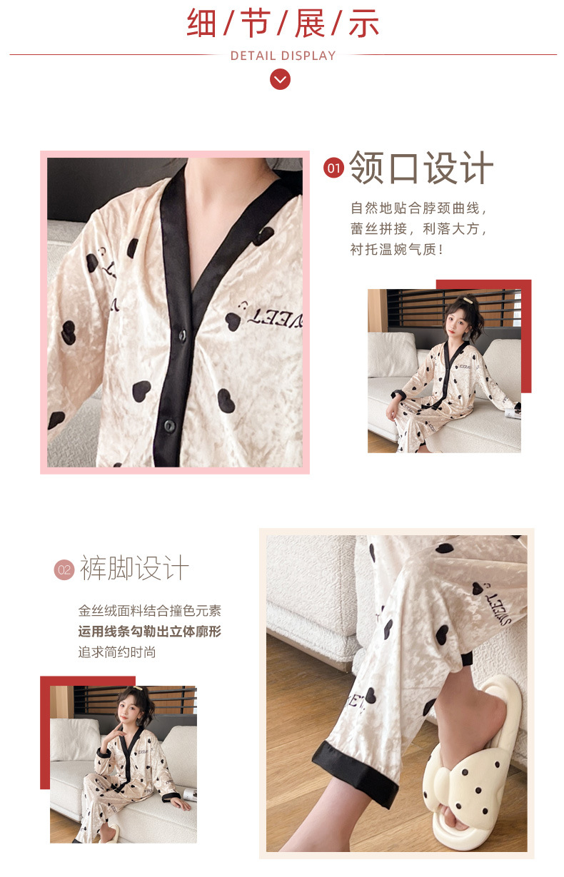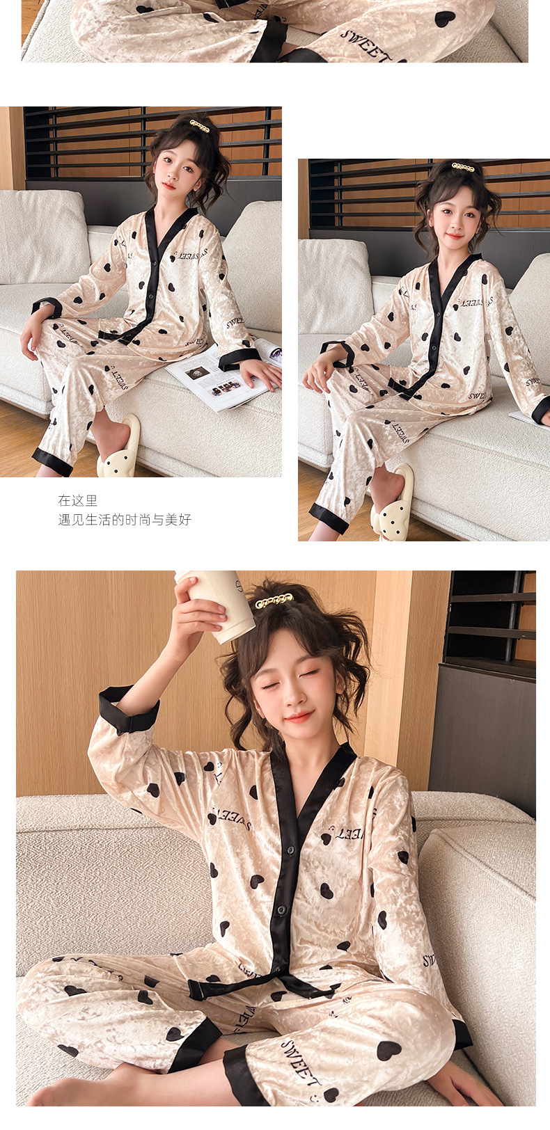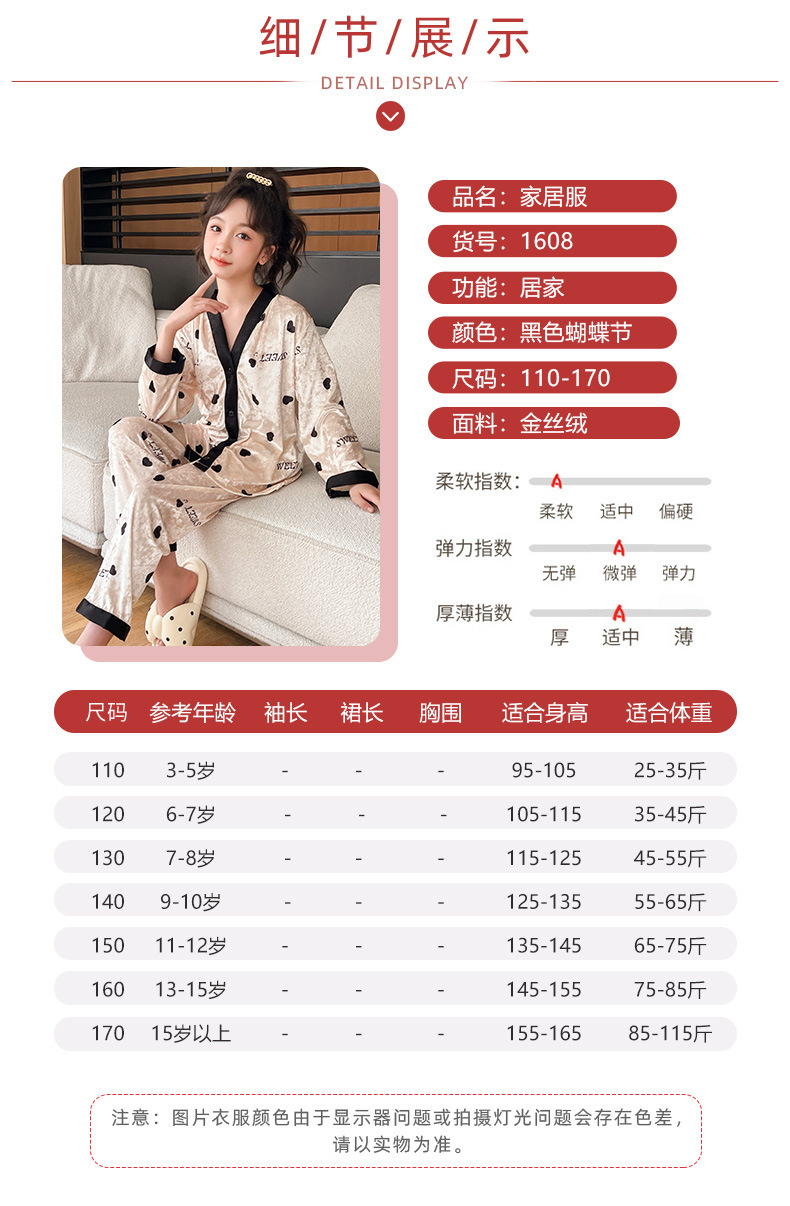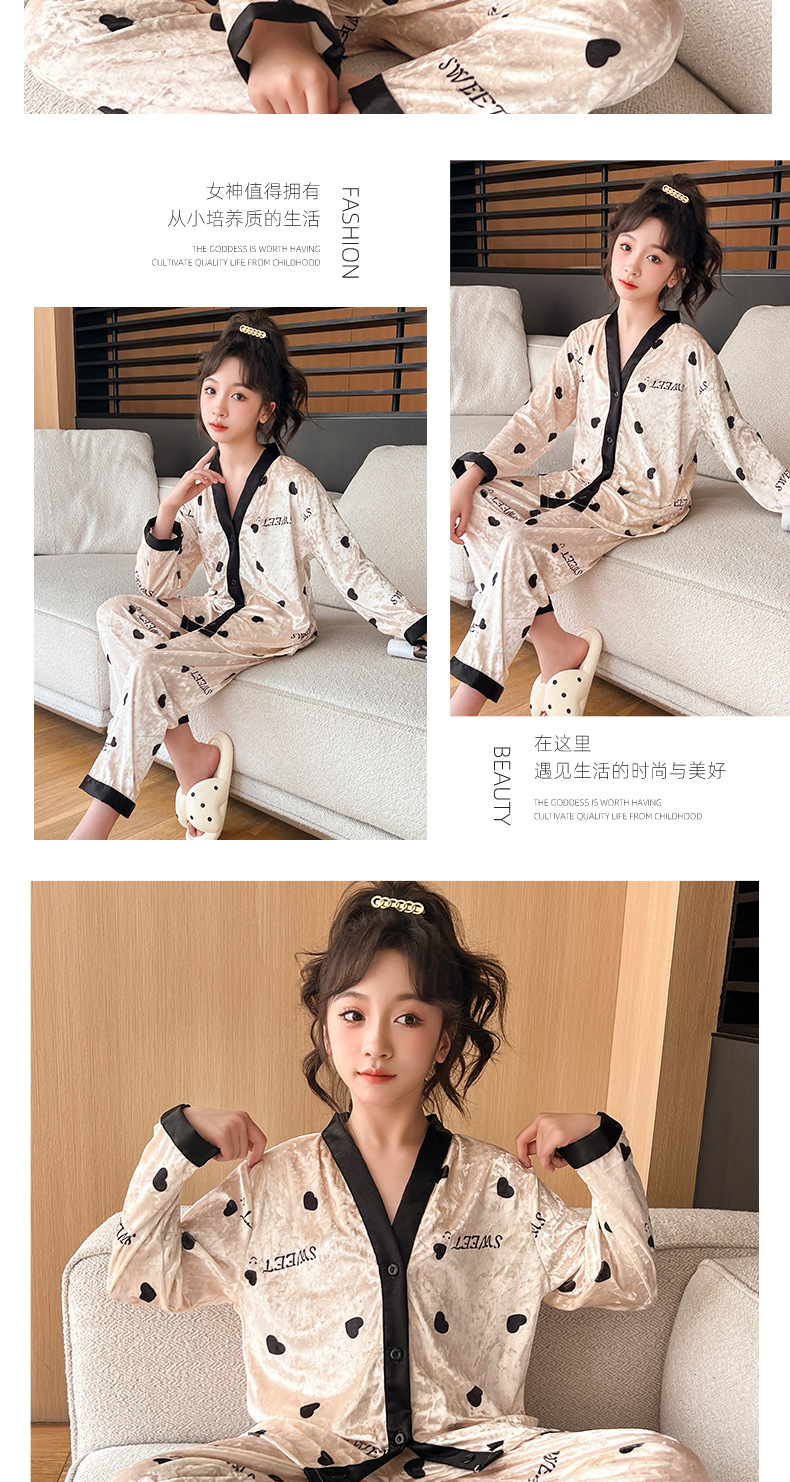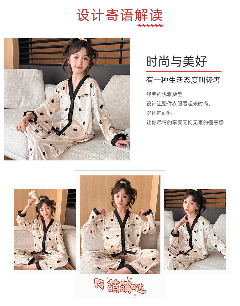 소녀 황금 벨벳 잠옷 봄과 가을 새로운 대형 어린이 벨벳 홈 옷 세트 소녀의 느슨한 캐주얼 투피스 세트스토어 가기