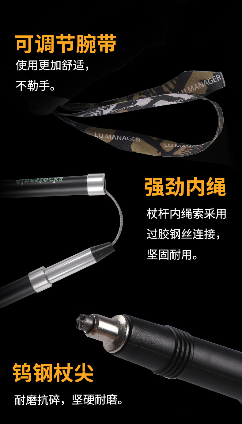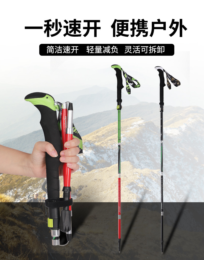 [공장] 하이 엔드 5 배 탄소 등산 스틱 지팡이 접이식 미끄럼 방지 목발 초경량 휴대용 크로스 컨트리 등산