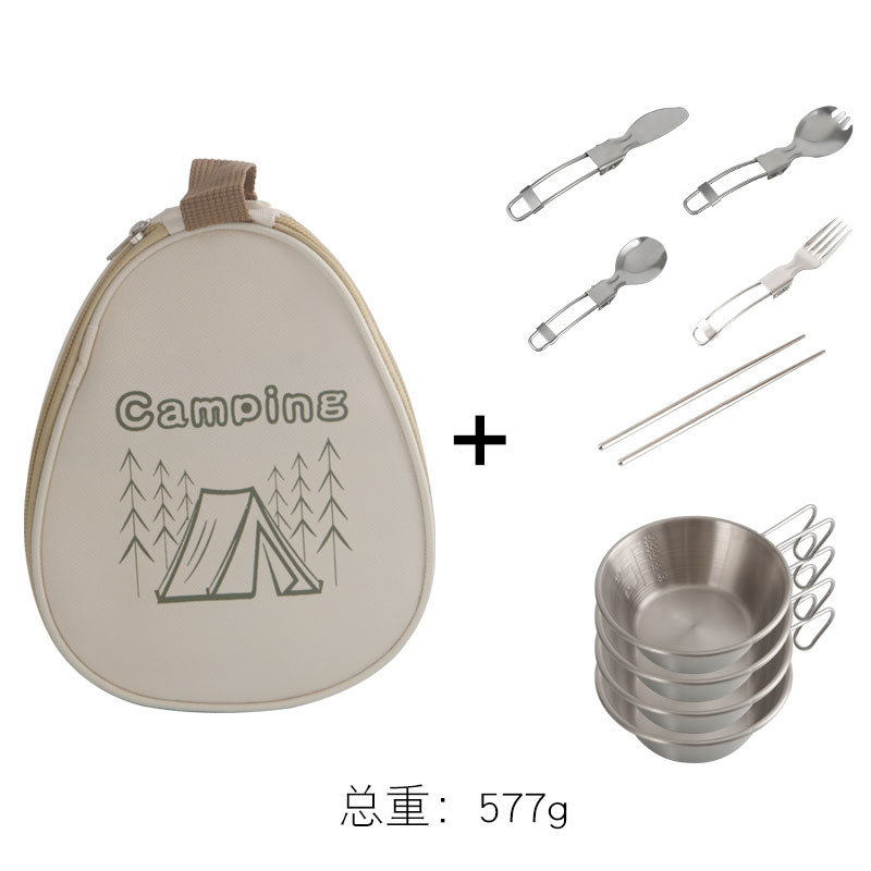 • 12+14cm 접이식 그릇 + 나이프, 포크, 원형 스푼, 샐러드 스푼, 젓가락, 오프화이트 수납 가방